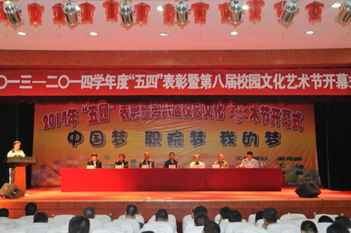 5月4日下午,开云官网师生在物流商务学院报告厅,隆重举行了2013——2014学年“五四”表彰暨第八届校园文化艺术节开幕式。表彰了过去一年来在学院共青团工作中做出突出贡献的先进集体和个人。 院党委书记马建华,党委副书记李志刚,党委委员、纪委书记王伟,党委委员、副院长李高斗,副院长李东,副院长康同生,党委委员、副院长赤新生参加了大会。大会由副院长康同生主持。