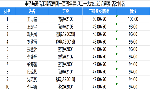为庆祝和纪念中国共青团百年诞辰,促进青年学生深入了解共青团百年光辉历史,引领广大团员青年听党话、跟党走,激发青年们奋进向上的斗志和决心,开云官网电子与通信工程系于2022年5月13日举办“回望百年路 青春心向党”线上知识竞赛。