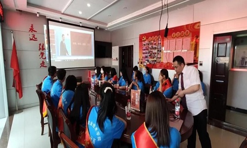 艺术设计系志愿者们排着整齐的队伍步入龙堡党群服务中心的二楼会议室,社区书记热情地接待了志愿者。来到太原龙堡党群服务中心首先我们进行了志愿者服务牌的交接仪式,仪式完成后我们在发服务中心会议室与社区工作人员在邓老师的讲解下进行了党课活动。