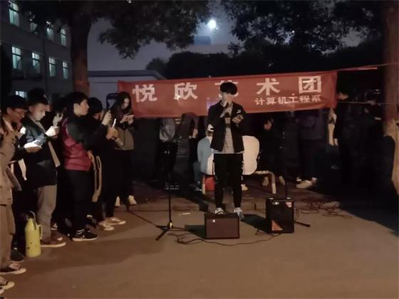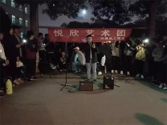 为了提高同学们综合素质,展现同学们个性风采,让广大同学积极参与运动,走下网络,走出宿舍,走向丰富多彩的校园文化生活园。计算机工程系悦欣艺术团于2019年10月17日晚上,在五号宿舍楼下举办了快闪活动。