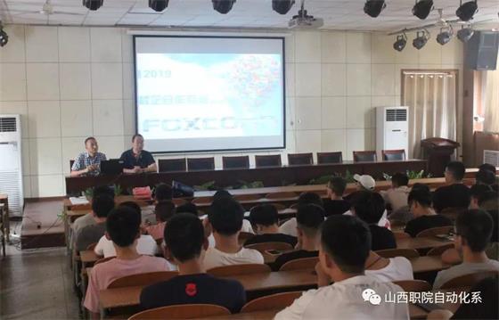 自动化系大二年级200余名学生在四楼阶梯教室认真聆听了太原富士康企业的宣讲,企业宣讲人从太原富士康的现有规模、薪酬待遇、企业未来前景、企业晋升空间以及人才需求等多个方面进行阐述。旨在组建企业订单班,培养企业所需要的专业性人才。