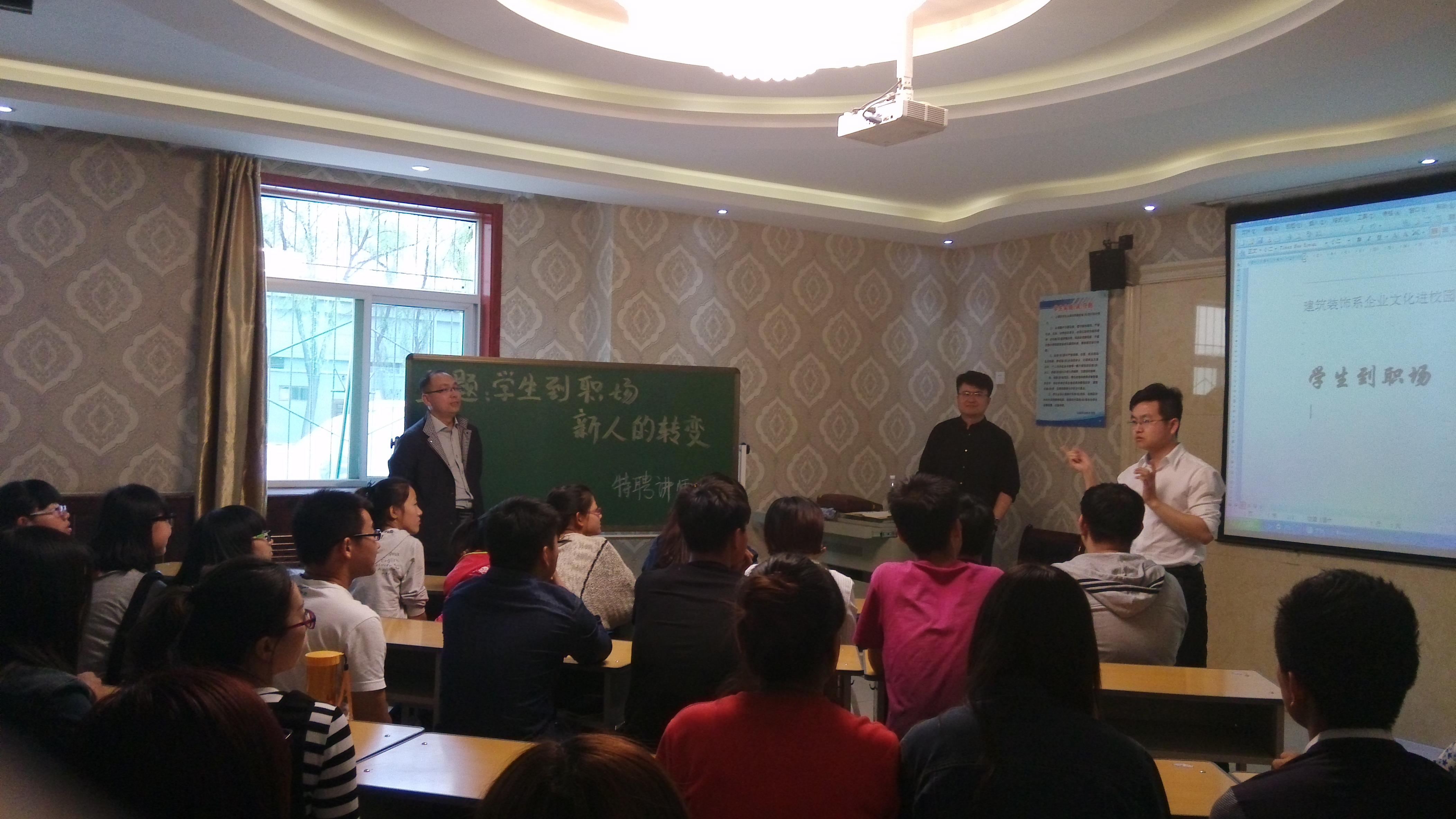 为了进一步拓宽校企合作渠道,实现企业文化进校园,使师生零距离接触企业,4月27日建筑装饰系组织了“先进企业文化进校园”讲座在物流商务学院实训室举行。此次讲座请到了我省著名公司的一些代表以及我系的领导,而且我系书记还发表了一些关于他对企业文化进校园活动的观点以及他对大学生提前接触企业文化的看法。