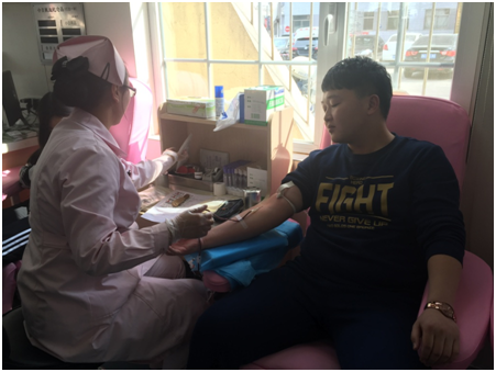 学生会成员向同学们介绍了合理献血的好处还有注意的事项,同学们都积极报名,一股无偿献血的爱心热潮在商贸旅游系澎湃而起。下午两点小广场就聚集了去献血的同学们,据老师介绍本次活动的采血人员全是专业医师,所用器具全是一次性的卫生用品,同学们无需有什么顾忌。随着人员到齐,同学们开始走向献血屋。献血分为五个部分,填表、验血、喝水、采血、休息。同学们一个个热情高涨,能挽救他人生命有对自己有好处,何乐而不为呢?