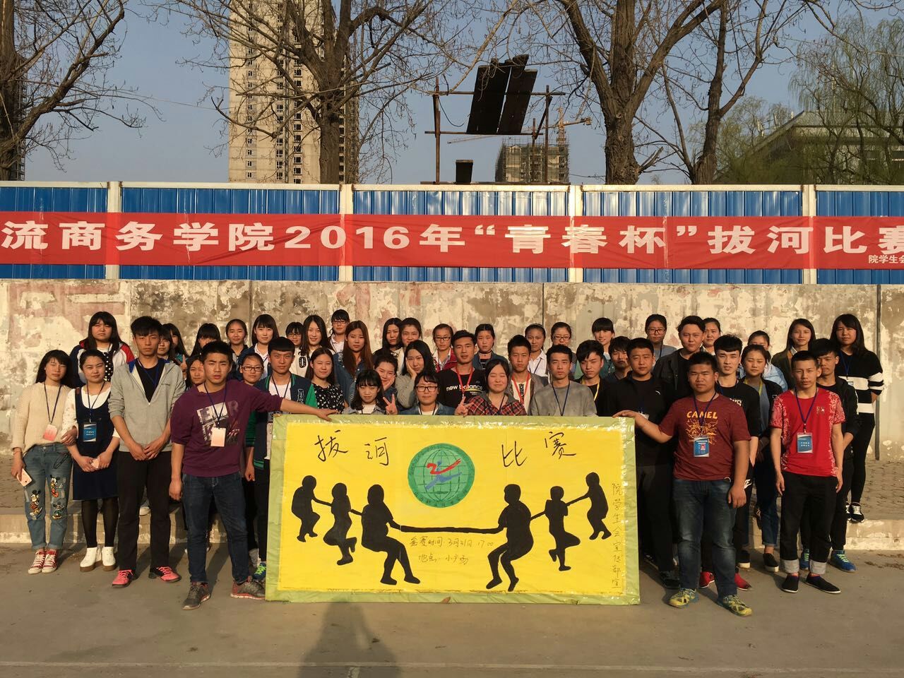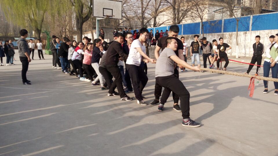 为响应院团委“走下网络,走出宿舍,走向操场”的系列主题活动,培养学生的集体荣誉感和组织观念以及不怕吃苦、勇于拼搏的精神。物流商务学院团委联合院学生会于2016年3月31日下午在物流商务学院小广场举办了“青春杯”拔河比赛。