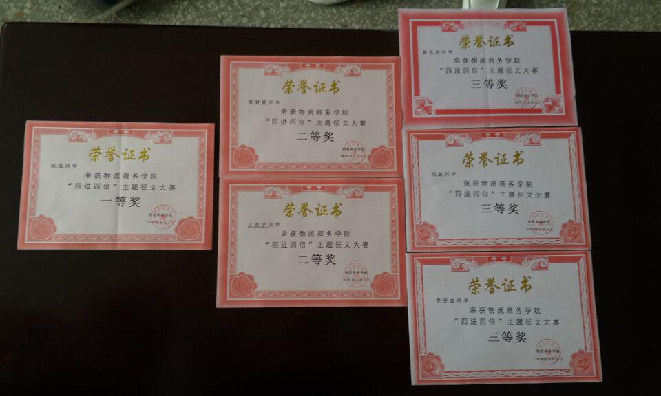 为了引导广大团青学习宣传贯彻习近平总书记系列重要讲话精神,加强当代大学生思想引领,帮助广大团青进一步牢固树立对党的科学理论的信仰,坚定走中国特色社会主义道路实现“中国梦”的信念,增强对党和政府的信任,增进对以习近平同志为核心的党中央的信赖,培育和践行社会主义核心价值观,物流商务学院团委开展了以“四进四信”为主题的征文大赛。