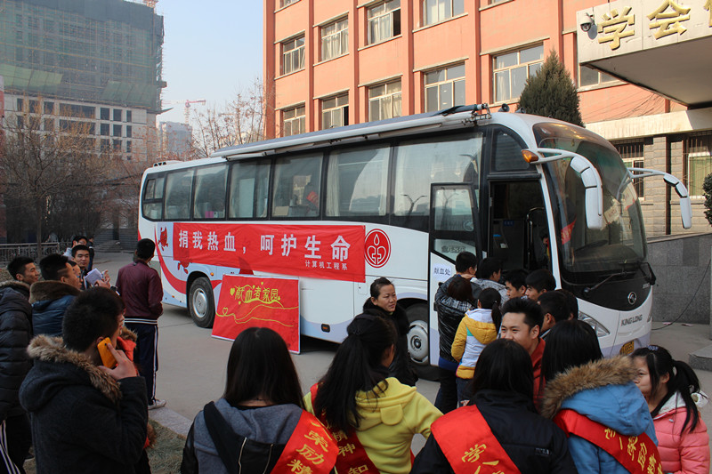 为发挥当代大学生爱心奉献、服务社会的精神,信息工程学院计算机工程系于2013年12月6日在教学楼前举行了以“无偿献血,仁爱光荣”为主题的献血活动。