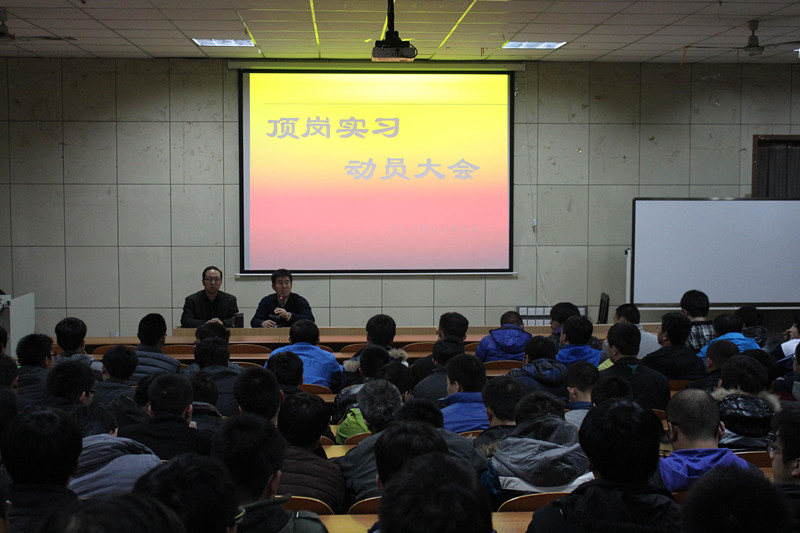 会上,周书记针对顶岗实习的重要性、我系近几年就业情况及顶岗实习中出现的问题给同学们做了详细的讲述;并对南京熊猫电子制造有限公司、北京通力盛达节能设备股份有限公司、天津力神电池股份有限公司等13家实习公司的待遇、工作环境、定职定岗进行了简述。李轩青主任深切指出在顶岗实习中同学们要不断培养自己爱岗敬业、吃苦耐劳、严肃认真、诚实守信的精神品质,要认真学习企业的企业文化、科学管理技能、制造技术。