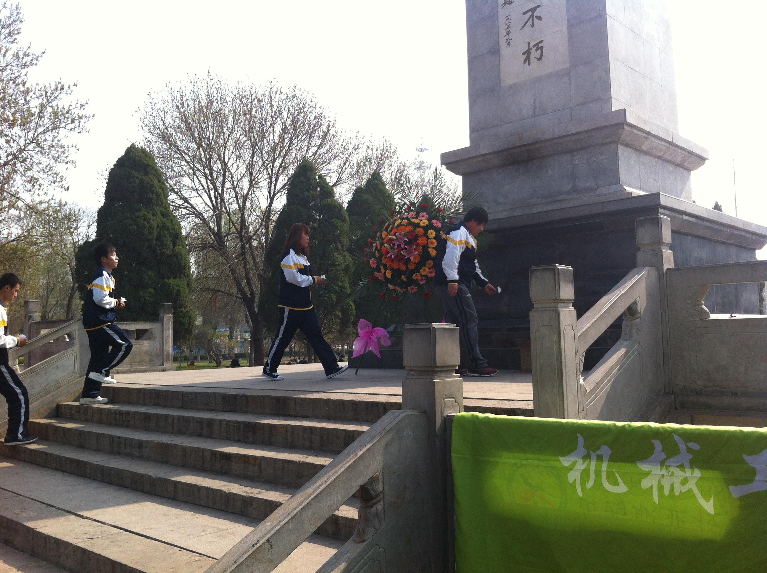 4月1日,在机械工程学院党委副书记毛培民的带领下,全体学生会成员以及团员代表来到了榆次区火车站革命英雄纪念碑前,发起了以“缅怀革命烈士,弘扬民族精神”为主题的清明节扫墓活动。