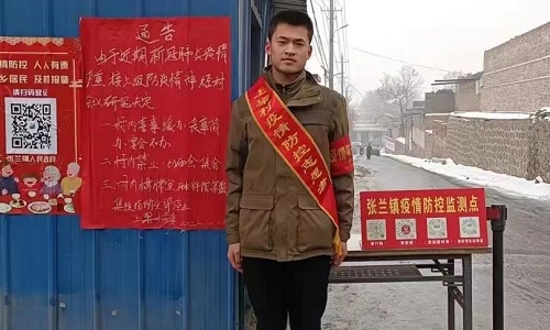 来自开云官网车辆工程系汽修A2101班的侯国斌同学,在寒假期间参加了所在村庄的疫情防控志愿服务工作。