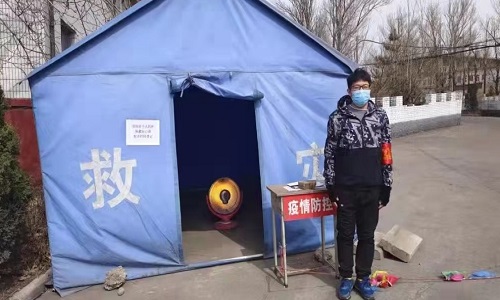 他的志愿服务工作主要是在图书馆门口执勤、对来往人员进行体温登记。