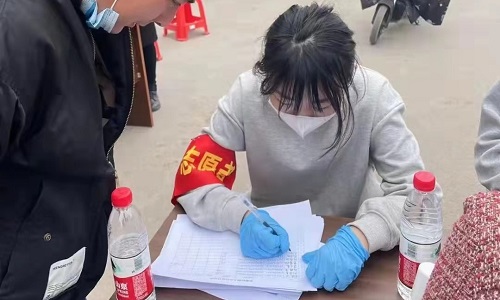 张佳琪负责的工作是小区内消毒、发放通行证、生活垃圾处理、采集业主信息和出行情况,以及配合医护人员组织做核酸检测。