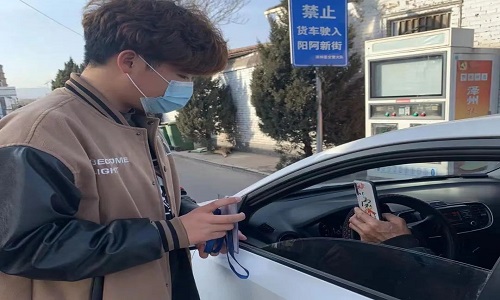 为严密做好疫情防控工作,杨潇同学积极投身于疫情防控工作,在所在村庄村口组织过往车辆进行登记并查看行程码,对来自高风险地区的进行劝返。