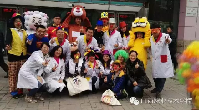 这支队伍就是省城欢乐天使(小丑医生)山西青联志愿者联盟,他们经过装扮后,用游戏或夸张的表演,帮助患儿或者其他弱势群体转移注意力,让他们暂时忘掉病痛,抚慰心灵,来传递温暖和快乐。