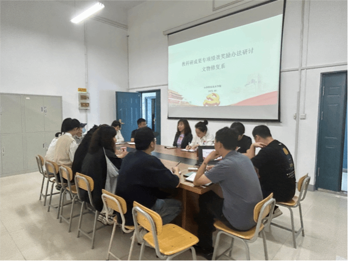 2023年9月19日,文物修复系全体专兼职教师对学院教科研成果专项绩效奖励办法进行专题学习,教科研成果奖励范围包括:科研成果奖、教学成果奖、纵向和横向课题、知识产权、教学改革建设项目、论文、教材专著、优秀团队及教学名师、教师指导学科竞赛和艺体类竞赛获奖、教师参加职业技能大赛和教学能力比赛获奖以及重要教科研平台建设成果。全体专兼职教师热烈讨论,表示积极参与和完成教科研工作,力争取得高水平研究成果。