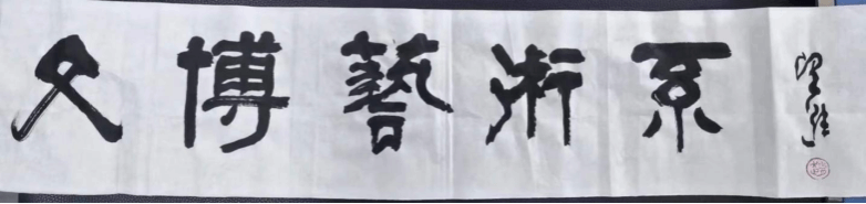 宣纸上书:“文博艺术系”笔力遒劲,寄寓着对本系美好发展的祝愿。