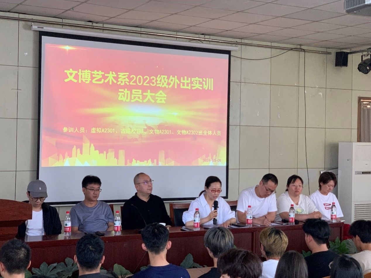 5月8日下午,文博艺术系召开2023级校外实践动员会。参加本次会议的有我系班子成员及本次外出实践的指导老师和辅导员、文物修复专业、虚拟技术应用专业、古建筑工程技术专业2023级全体学生。校外实践是体现职业教育特色的一种实践性教育方式,通过开展校外实践教学活动可以巩固在校理论知识,培养学生的实践动手能力以及团队合作能力 。