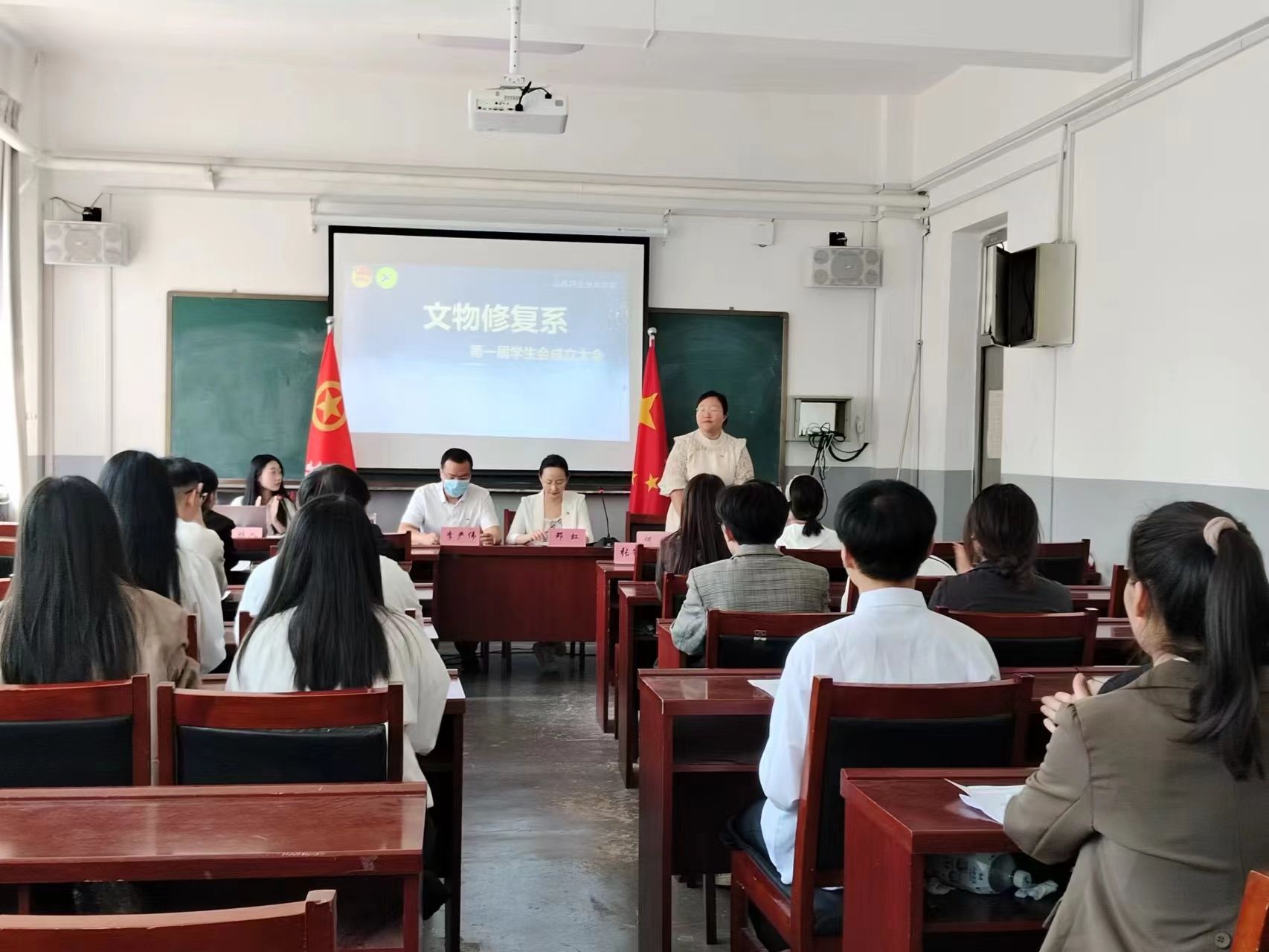 2023年9月21日,开云kaiyun官方网站文博艺术系第一届学生会成立大会在南中环校区教学楼六楼召开,党总支书记邓虹、党总支副书记李严伟、团总支书记何苗及我系各位辅导员老师莅临本次大会并发表重要讲话,17名学生会干部全部列席并宣读部门工作计划。
