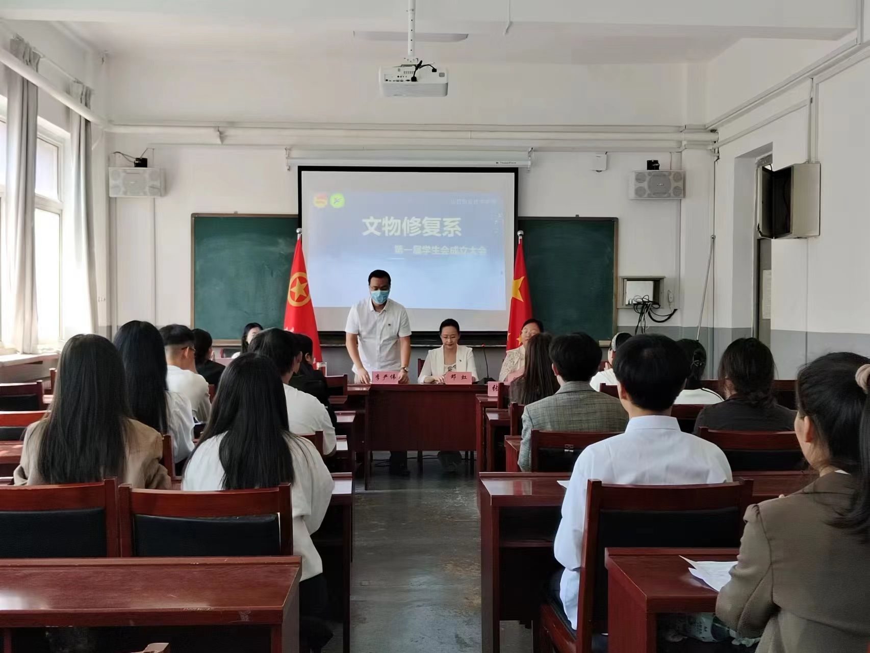 大会最后,老师同学们全体起立奏唱国歌,激情高昂。主持人宣布会议结束,文物修复系学生会正式成立!