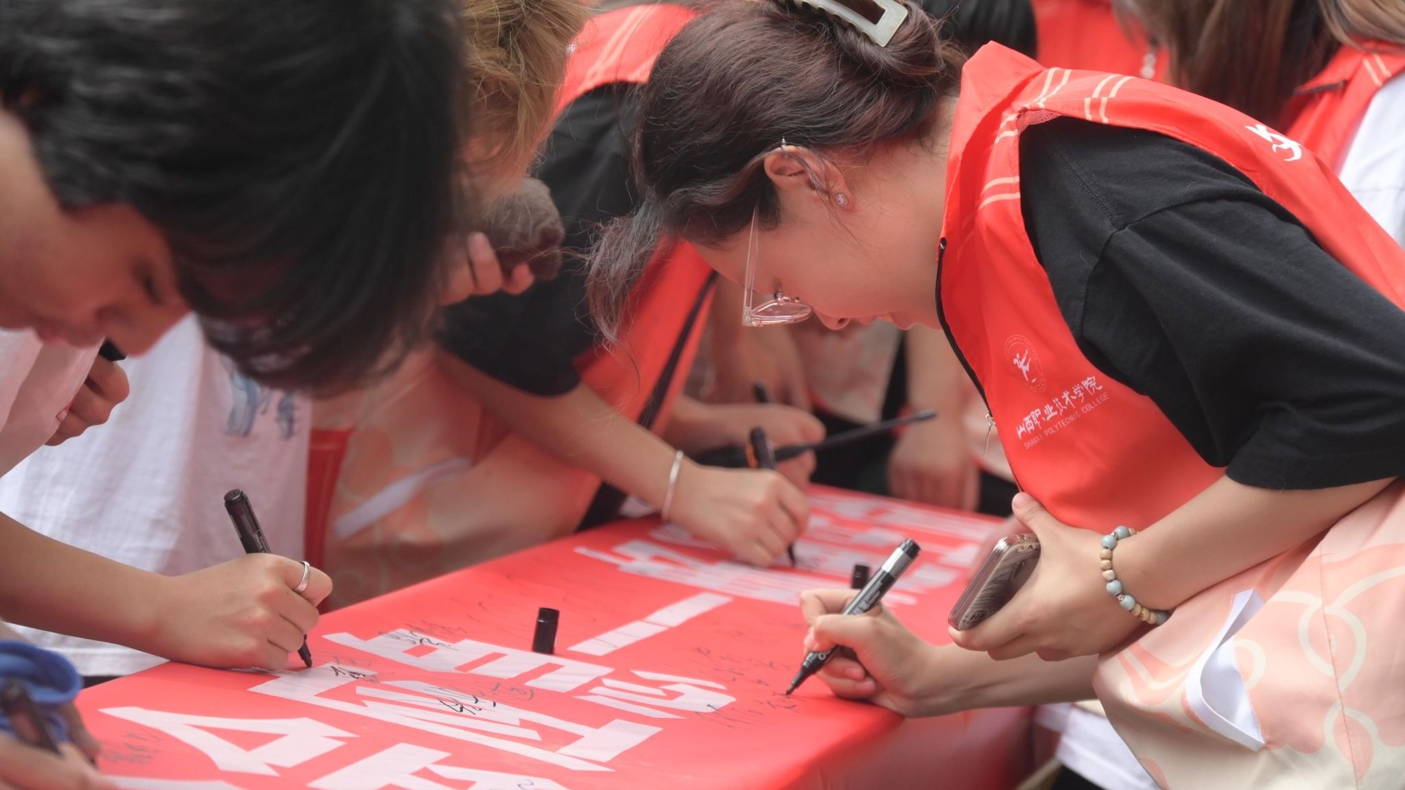 随后开展了横幅签字活动,同学们纷纷在条幅上签下名字,并表示让我们携手共进,以更加饱满的热情和更加坚定的决心,共同书写我校安全工作的新篇章。