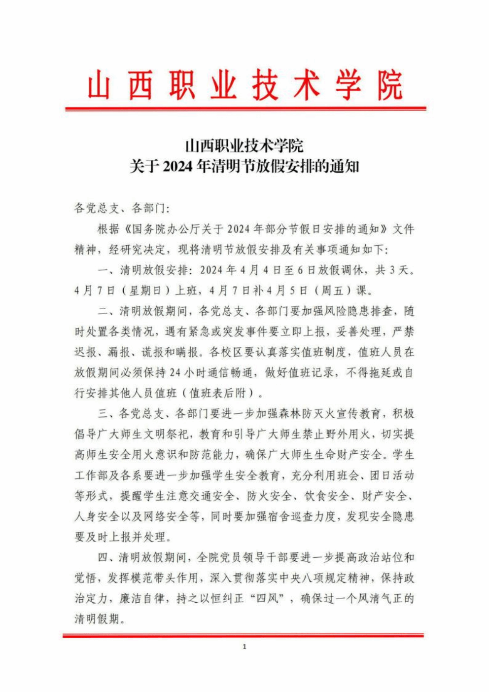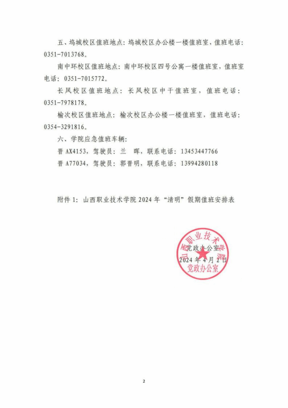 开云kaiyun官方网站 2024 年“清明 ”假期值班安排表