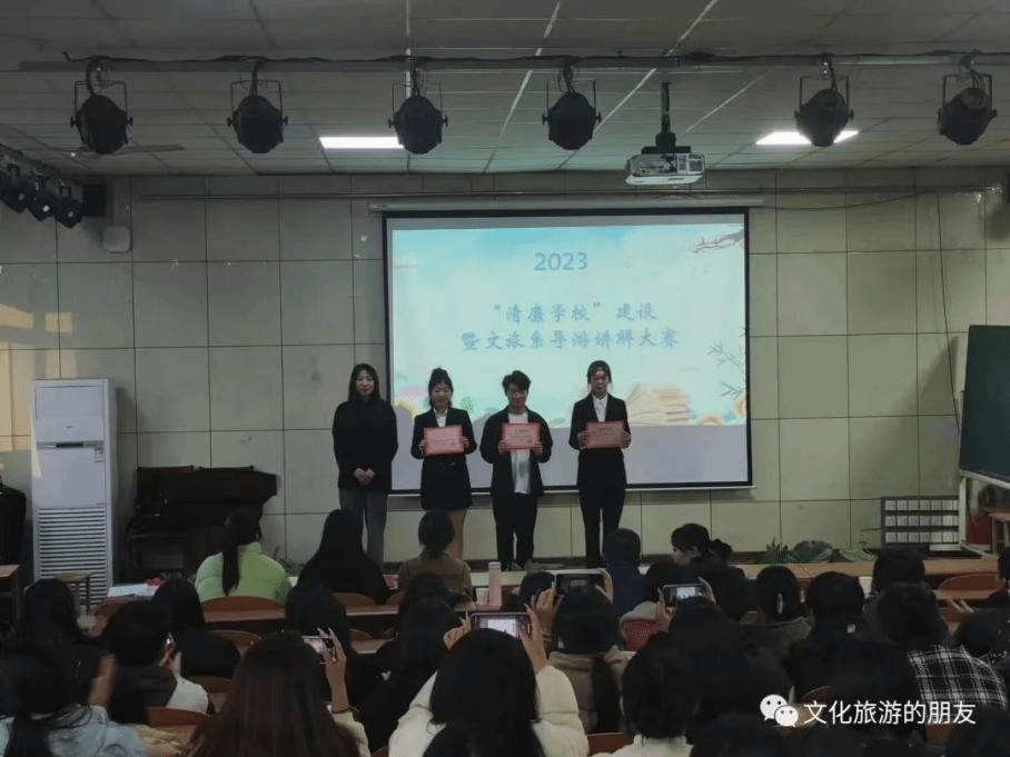 清廉是中华民族的魂,代代相传,早已化作不朽的精神,撑起了中华民族的脊梁。为发扬崇廉向上的精神,促进清廉学校建设,我系于2023年11月23日下午3:30在办公楼四层会议室举办了2023年“清廉学校”建设暨文旅系导游大赛。