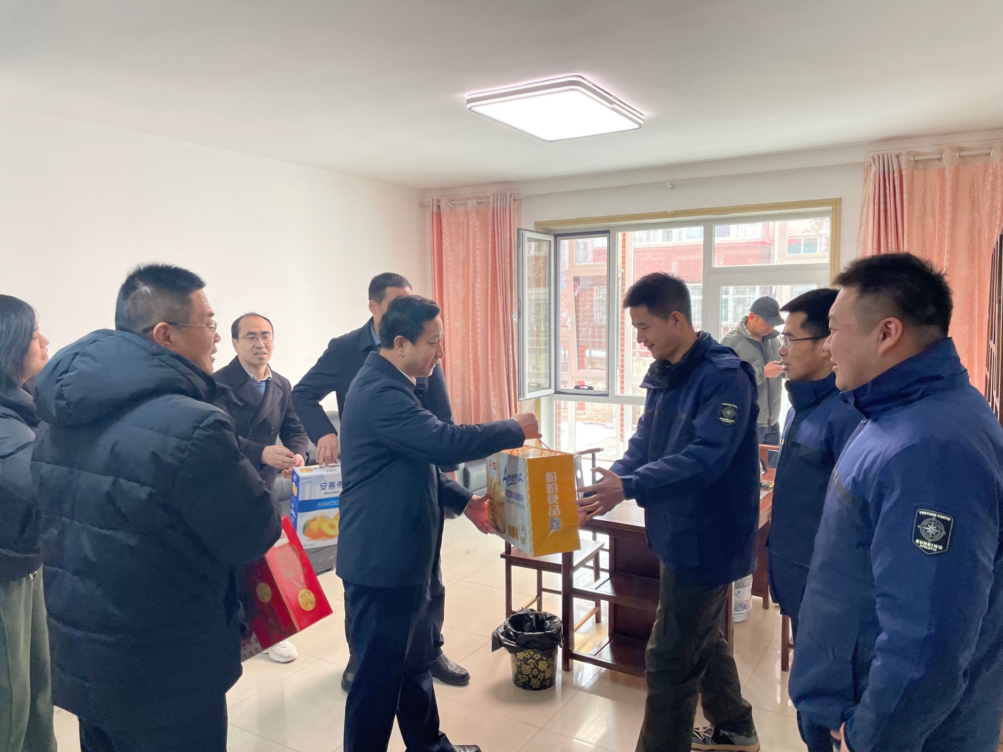 2月6日上午,学院党委书记雷承锋、纪委书记牛惠斌,党委委员、副院长赤新生,党委委员、宣传统战部部长、党政办公室主任宋海宏等一行,走进开云官网职教园区新校区一期工程建设项目施工现场,看望慰问春节期间依然坚守岗位的一线工作人员,并为大家送去诚挚的问候和新春的祝福。