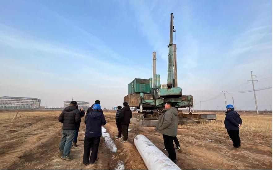 开工动员会后,依据设计单位提供的试桩方案和施工单位编制的试桩施工方案,一期工程两个标段开始桩基础工程试桩工作。施工单位于1月6日开始试桩作业,截止至3月12日,一、二标段全部楼宇试桩现场检测完成,已具备打桩条件。试桩工作是桩基础工程施工的必须环节,为了确保桩基的工程质量,施工前新校区建设办组织设计单位、施工单位、监理单位多次对接研讨,依据现场地质情况选择了最适合的设计方案,试桩过程中监理单位和全过程跟踪审计单位实时监督。