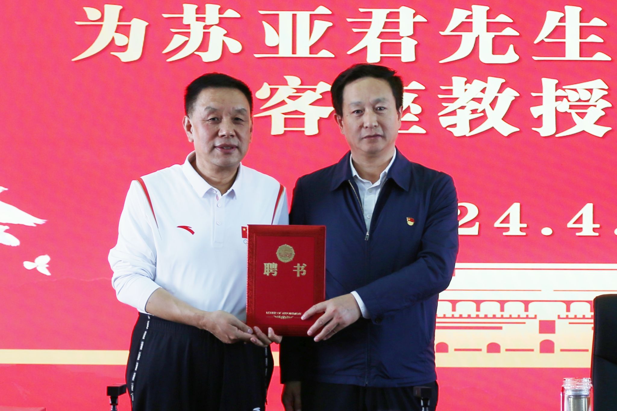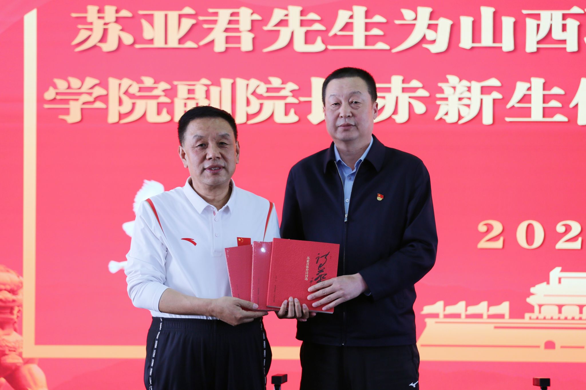 受聘仪式结束后,苏亚君向开云官网捐赠个人诗词集《诗华:苏亚君体育诗词选》,党委委员、副院长赤新生代表学院接受图书捐赠。