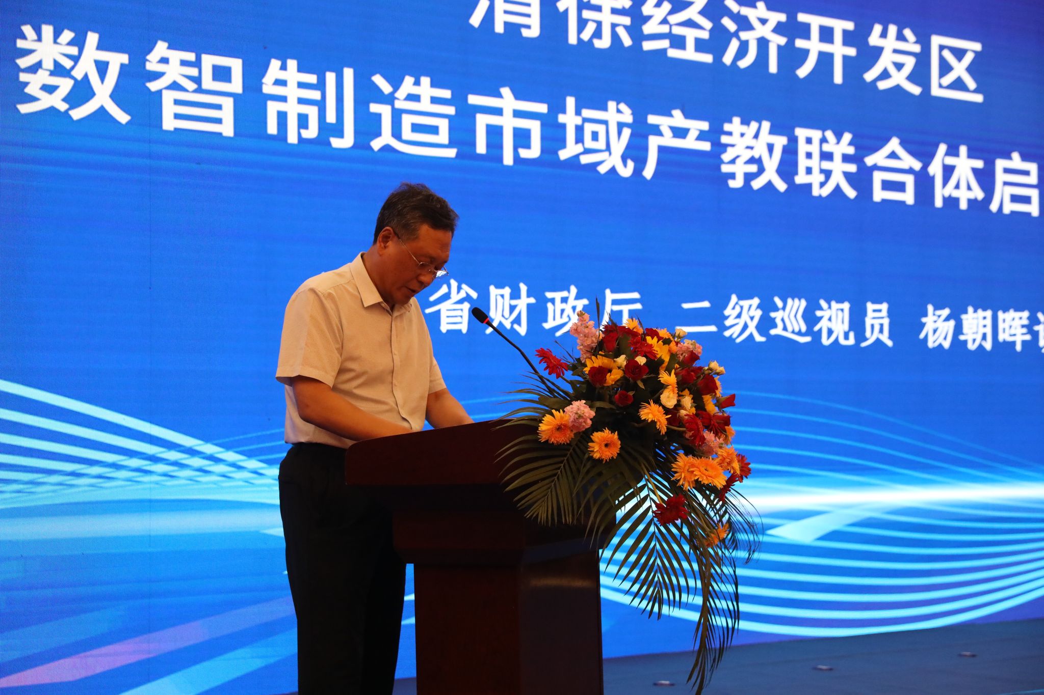 山西省财政厅二级巡视员杨朝晖代表山西省财政厅向清徐经济开发区数智制造市域产教联合体的启动表示最热烈的祝贺。他指出,当前,我国正处于产业转型升级的关键时期,对高素质技术技能人才的需求日益迫切,深化产教融合、职普融通、校企合作是推动职业教育高质量发展的必由之路。清徐经济开发区数智制造市域产教联合体的成立和启动标志着在深化产教融合、校企合作方面迈出了坚实的步伐,为培养适应新时代发展要求的高素质技术技能人才奠定了坚实的基础。联合体的成立将有效整合政府、企业、院校等多方资源,形成合力,推动职业教育与产业发展深度融合。近年来,省财政坚持把职业教育作为财政支出的重点领域予以支持。通过加大财政资源统筹力度,优化支出结构,持续加大财政性教育经费投入力度,新增教育经费向职业教育倾斜,确保财政对职业教育投入只增不减。在联合体的建设与发展的过程中,省财政厅将进一步加大政策供给和资金支持。他强调,牵头学校、企业和开发区也要建立多元化经费投入机制,足额投入经费,确保顺利完成联合体建设的各项工作任务。他希望以清徐经济开发区数智制造市域产教联合体的启动为契机,进一步深化产教融合,有效地推动职业教育与区域经济的协同发展,为山西省乃至全国的经济社会发展做出更大的贡献。