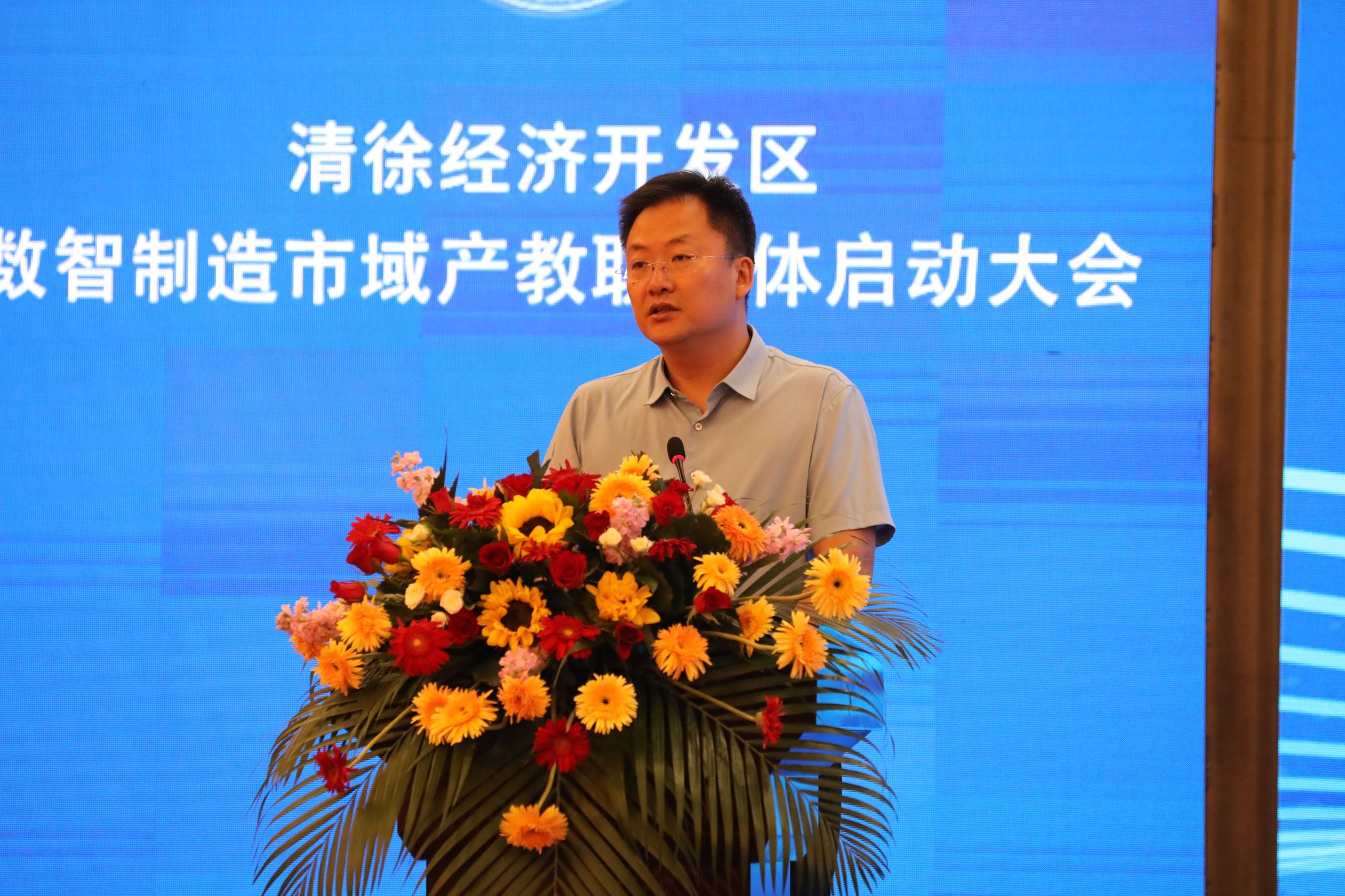 山西省教育厅职业教育与成人教育处处长韩瑞勇受山西省教育工委委员、省教育厅党组成员、副厅长王东委托,代表省教育厅对启动大会的召开表示热烈祝贺。他强调,产教融合作为国家教育改革和人才资源开发的基本制度安排,既是职业教育的基本办学模式,也是职业教育发展的本质要求,还是产业转型升级、教育形态变革和提高职业教育质量的必然路径。山西省委、省政府、省教育厅高度重视职业教育产教融合工作,在各级政府和广大企事业单位,特别是在发改委、财政厅和各个省级单位的支持下,取得了一系列积极的重要成果。他指出,产教融合的工作思路主要就是点线面结合,就是两点两线和一个面。其中一个点是专业优化调整。职业学校要紧紧围绕我省高质量发展的目标要求,主动适应我省经济社会发展特别是产业结构、社会需求,推进职业学校新设一批适应新技术、新产业、新职业、新发展、新需求的专业,淘汰一批不适应经济社会发展的专业,建设一批特色化、数字化、品牌化的专业或者专业群,逐步推动产业链、人才链、教育链的有序链接,构建与我省现代产业新体系相契合的专业体系,推动职业学校人才供给,基本满足经济社会发展对高素质技术技能人才的需求。另一个点就是建设职业学校的特色产业学院。要以建设产业学院为切口,切实推动产教融合,通过开展订单式培养、套餐式培训,推进中国特色学徒制,培养专业证、产业链的本土人才,推进产业学院实体化运作,精准服务山西重点产业、特色产业发展。两条线,第一条线就是建设市域产业联合体。要充分发挥政府统筹、产业聚合、企业迁移、学校主体的作用。以产业园区为基础,以市域为基本单元,有效和联合体内各级各类主体实现协同配合,提升职业教育服务区域经济发展的能力,打造一批市域产教联合体。第二条线是围绕战略性新兴产业、现代能源产业、现代农业、现代服务业等领域,汇聚产教资源,优化教学组织,实现双向互动,建设一批省级的行业产教融合共同体。通过发挥行业龙头企业、高水平高等学校、职业学校等各个建设主体的作用,推动实体化运行、产教供需对接,联合开展人才培养,协同开展技术攻关、开发教学资源等产教全要素融合。一个面是由发改委牵头的“山西省教育科技人才一体化服务产业云平台”。就是要通过建立具有人才培养现状分析、科研能力水平研判、产业资源分布、专业服务区域产业发展现状能力分析、人才供需预测与对接、成果转化应用、紧缺岗位画像等等功能,基于新一代信息技术的现代化智能管理信息,有效解决产教融合发展中存在的信息资源不对称、数字资源价值不低和利用率不高、教育产业衔接不紧密、合作交流成本高的问题,实现人才培养和科技创新供给侧、产业需求侧结构要素的全方位高效匹配,达到全要素生产率提升目标。打造市域产教联合体是推进现代职业教育改革以及系统培养技术技能人才、服务经济发展方式转变、促进技术技能积累与创新的重要载体,意义重大。清徐经济开发区数智制造市域产教联合体的成立和启动,既是贯彻落实党的二十大精神,推进产教融合、科教融会的重要探索,也是现代职业教育体系建设改革要求的具体行动,是我们推进职业教育与区域经济高质量发展的重要决策。他对联合体的工作提出以下几点要求,一是要求联合体多元参与,实体化运行。要成立政府、企业、学校、科研机构等多方参与的理事会,制定联合体章程,拟定发展规划和建设方案,要明确组织架构、运行机制、任务分工和各单位的责任、权利和义务等等。园区的管委会要统筹协调,深度参与,搭建平台、全程推进,推动建设大数据平台、产教融合实践中心等产教对接的载体,构建起产教双轮驱动的新机制。各成员单位要切实提高政治站位,立足国家,着手战略布局,勇担发展使命,加快推进联合体建设,助推产业转型升级和高质量发展。二是联合体要赋能产业发展,增强企业的核心竞争力。一要围绕技术创新链条,优化资源配置。院校、科研机构和企业等优势互补,对接产业发展需求。要列出技术攻关的重点领域,建设共性技术服务平台,企业出题,院校答题,促进技术创新、工艺改进、产品升级,解决实际生产问题。二要联合制定培训规划,支持联合体内院校积极承接企业员工就业技能培训、岗位技能提升培训和创新创业培训,要面向中小微企业提供共享员工的培训,提升企业员工的技能水平和岗位适应能力。三要建设集实践教学、社会培训、真实生产和技术服务功能一体的开放性区域产业产教融合实践中心,推动实践中心服务职业学校学生实习实训,企业员工培训、工艺改进技术。三是联合体要赋能学校发展,协同培养高技能的人才。要共享共商培养方案,共筑教学团队,共建教学资源,共同实施学业考核评价。及时把握新方法、新技术,新工艺,新标准,引入教学教育实践,提升人才培养的先进性和适应性。二要广泛开展中国特色学徒制。企业按岗位总量一定比例设立岗位,接受学生来企业实习实训和教师岗位建立。三要建设双师型的教师队伍。建立校企人员双向交流机制,鼓励校企共建双师型教师培养培训基地,支持企业工程技术人员、高技能人才、管理人员、能工巧匠到学校全职或者兼职工作。希望联合体能紧紧抓住职业教育