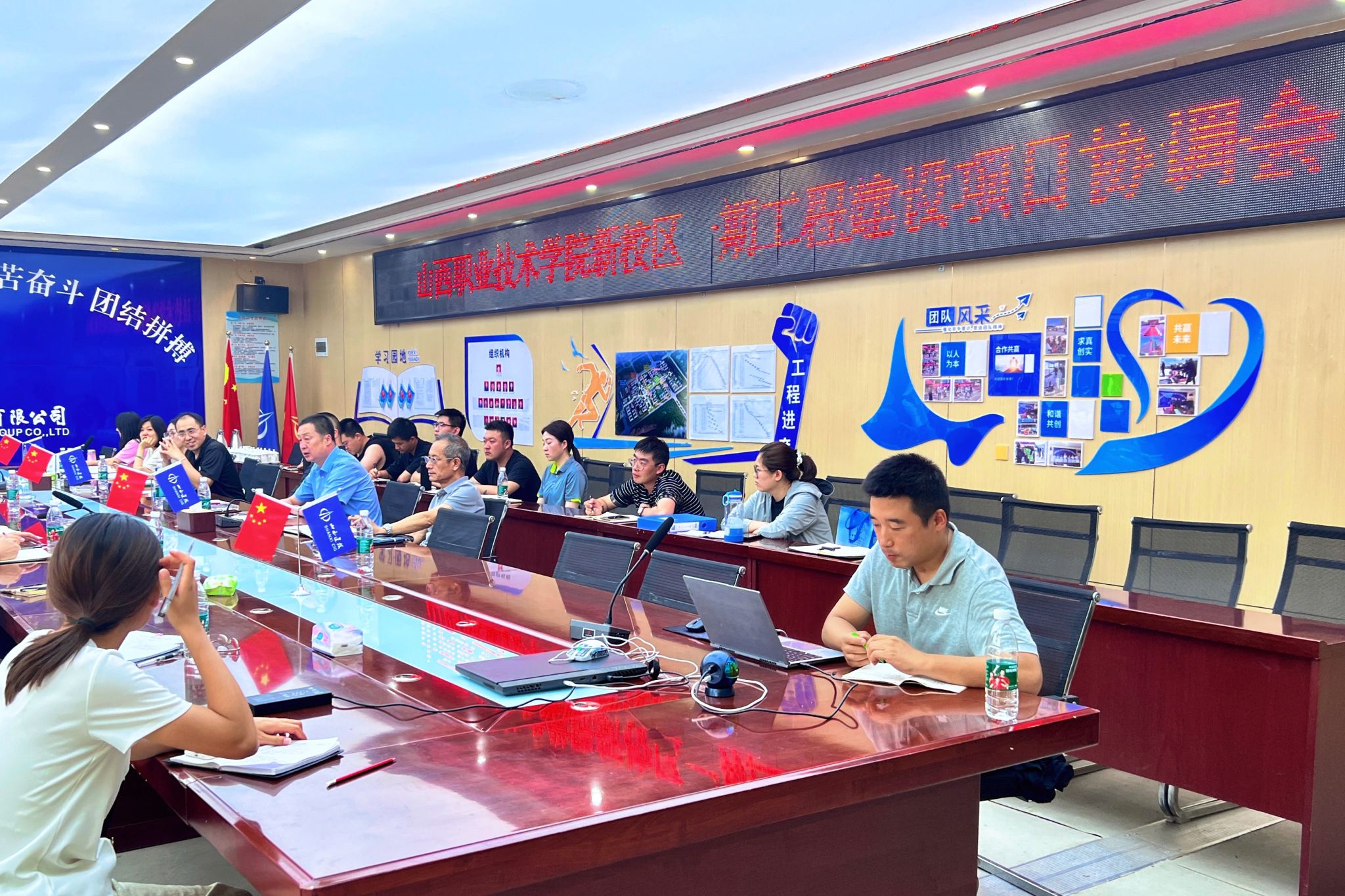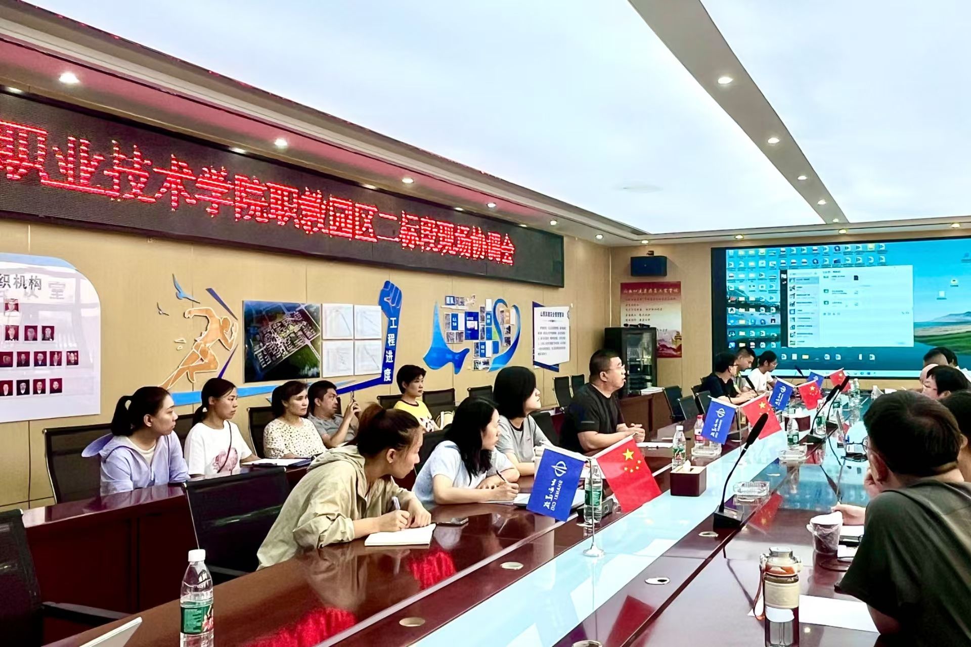 7月18日下午,新校区建设办公室于施工现场第二标段会议室召开新校区一期工程建设项目协调会议。会议确定了近期需完成的工作:新校区室外配套项目水、暖、电、污水、气等对接事宜,电梯招标事宜,样板间确认事宜,图纸变更签证确认事宜及二标段清单漏项事宜,燃气锅炉房、弱电智能化工程、看台顶棚、开闭所、变配电需进行深化设计。