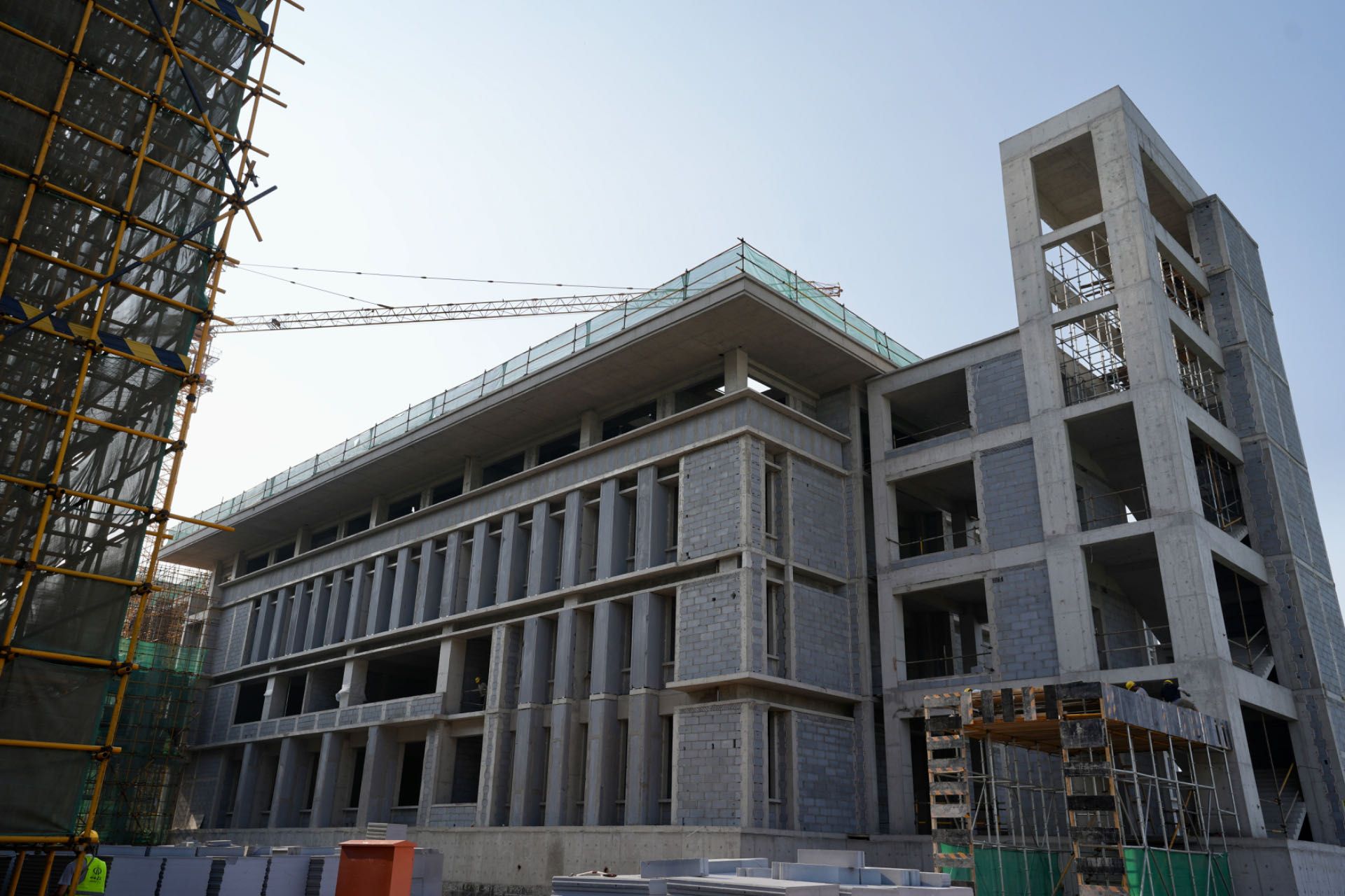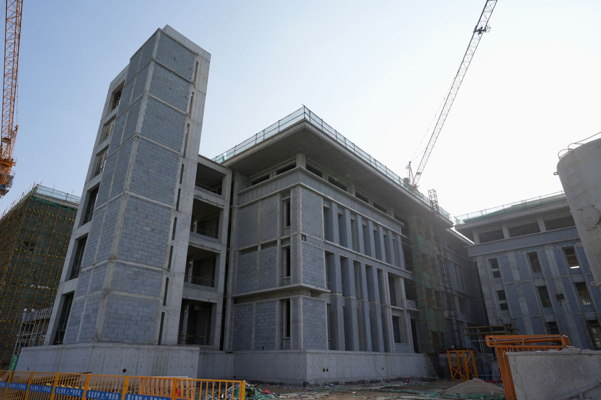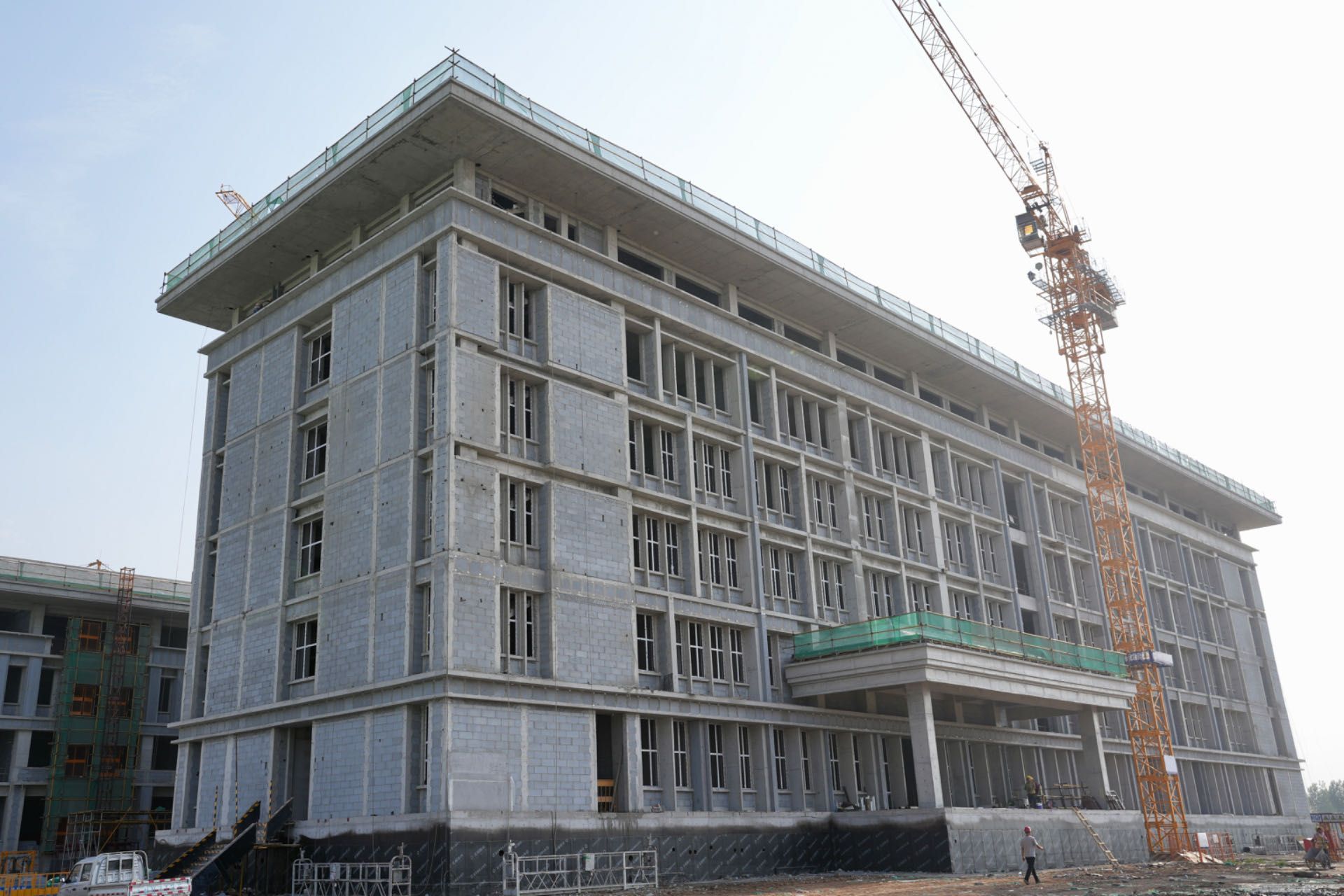 盛夏时节,繁忙如织,新校区一期工程施工现场不惧酷暑、不停不歇,随着第一、二标段建筑单体接连封顶,新校区一期项目初具规模。现将6月、7月施工进度简报如下: