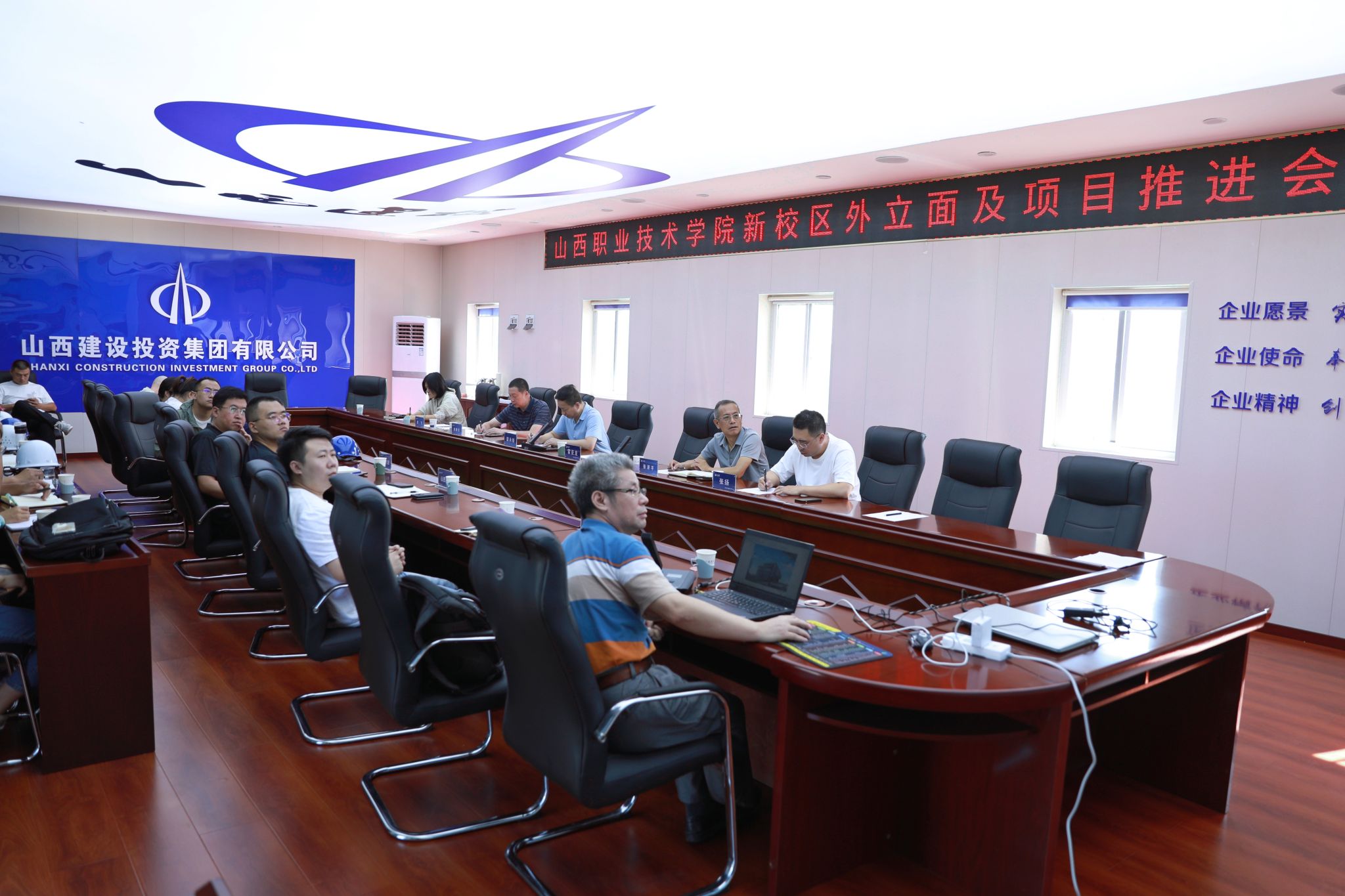 会上,冒亚龙对新校区各单体建筑的屋顶及外立面材质、色彩搭配进行了全面而细致的讲解。他指出,一是建筑设计追求的是繁杂而瑰丽,多样但统一,为了营造具有职教特色的优美智慧校园,在总体规划及建筑单体外立面设计上,依据不同功能区进行了差异化处理。二是建筑外立面材质要尽可能选择矿物原料,确保色彩持久鲜亮。同时施工单位需严格把控色彩调配,制作多组外立面定样样板,力求选出最佳方案。他表示,为了把控学院新校区整体风格与色彩,全面实现设计蓝图,将不遗余力、全力以赴地投入项目建设中。