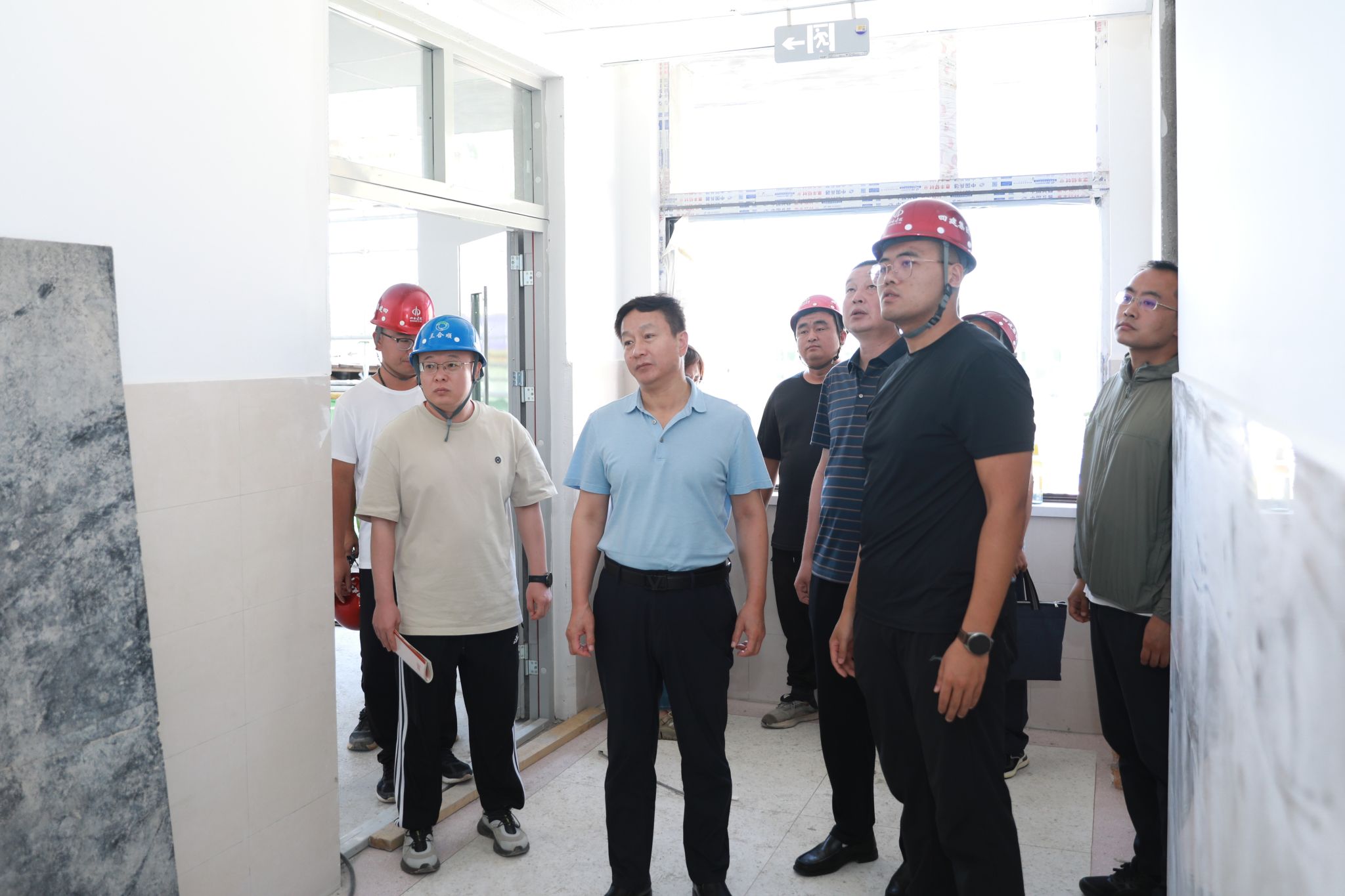 会后,雷承锋一行前往操场及学生宿舍样板间进行实地查看,以更加直观的方式了解施工进展与细节。在学生宿舍样板间,雷承锋对室内布局、材料选用等方面进行了细致的查看,还与随行人员就如何进一步优化施工方案、提升工程质量、加快施工进度等问题进行了深入交流。