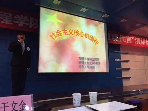为深入学习贯彻社会主义核心价值观的基本内容,注重宣传教育,使社会主义核心价值观融入青年学生的学习生活和精神世界,材料与建筑工程学院于11月24日在主楼七层会议室举办了“我为核心价值观代言”演讲比赛。