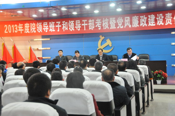 会上,院党委书记马建华代表院领导班子作了2013年度院领导班子述职报告、落实党风廉政建设责任制情况报告和本人述职述廉报告。他指出,2013年是学院骨干校建设的关键之年。一年来,在省高校工委和省教育厅的正确领导下,在全院党员干部职工的共同努力下,学院领导班子认真履行职责,全面贯彻落实党的十八大精神,紧紧围绕“六个以”的工作思路,以加强内涵建设为目标,以破解学院发展难题为突破口,以开展教育实践活动为动力,务实求真,扎实进取,全面提高教育教学质量,学院各项事业呈现出良好的发展态势。马书记表示,在新的一年里,学院党政领导班子将全面贯彻党的十八届三中全会精神,解放思想,深化改革,以强力推进骨干校建设,全面推进新校区建设为中心,继续改进作风、务实创新,为实现学院再发展、再跨越而努力奋斗。他还从加强学习提高自身素质;尽职尽责、认真履职;遵守纪律、清正廉洁三个方面作了个人述职述廉报告。与会人员对院领导班子和领导干部暨党风廉政建设责任制情况进行了民主测评。