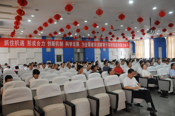 院长昝和平的讲话分为学院面临的工作任务、目前我们工作中存在的一些问题以及如何转变工作作风,提高工作实效三部分。关于学院目前面临的工作任务,昝院长指出,学院的主要任务是培养社会需要的高素质职业人员,近年来,我们在人才培养工作方面取得了不错的成绩,但是与百所国家骨干院校的要求还有不小的差距,为此,我们必须要解放思想、实事求是、大胆创新,根据社会市场需求和生源质量变化调整我们的人才培养模式和方案;要加强师资队伍建设,培养高水平的学科带头人、骨干教师,培育“双师”结构的教学团队;要把加强实训基地建设作为学院目前和今后的重点工作来做,创新校企合作的体制机制,充分利用学院现有的实训资源,积极引入社会实训资源,增加师生人均资源占有率;增加实训学时,营造良好的学习氛围和职业氛围。