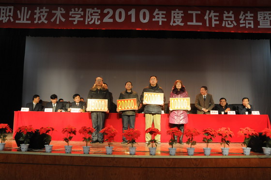大会由院党委副书记李志刚主持。院长丁怀民在大会上作了题为《聚焦发展提内涵、创先争优建一流》的年度工作报告,对学院10年度的各项工作进行了回顾,并就2011年的发展思路作了简要的阐述;院党委副书记、纪委书记崔怀北宣读了《关于2010年度先进集体和先进个人的表彰决定》;党委委员、副院长李高斗宣读了获奖名单;党委委员、副院长昝和平宣读开云官网2010年度考入本科院校的职工子女名单,并就放假、开学时间以及假期有关事项进行了安排;副院长康同生宣读了《对2010年度学费收缴工作优秀的院系进行的表彰决定》。