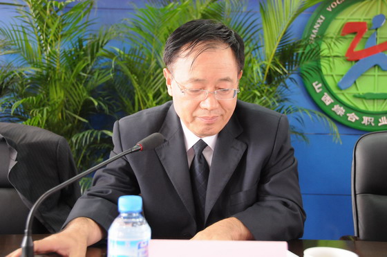 山西材料与信息职业教育集团代表、太原森久房地产公司董事长贾瑞平在会上发表讲话