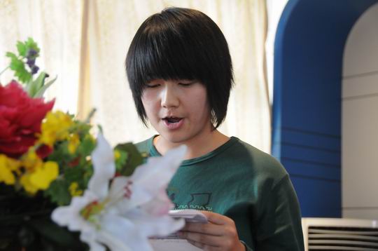 学生代表计算机工程系信息A0801班刘美玲在会上发言