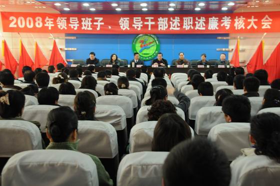 院领导就个人在2008年的工作情况、工作业绩、存在的问题及努力的方向进行了述职述廉。述职述廉后,所有与会人员通过问卷方式对校领导进行了民主测评。