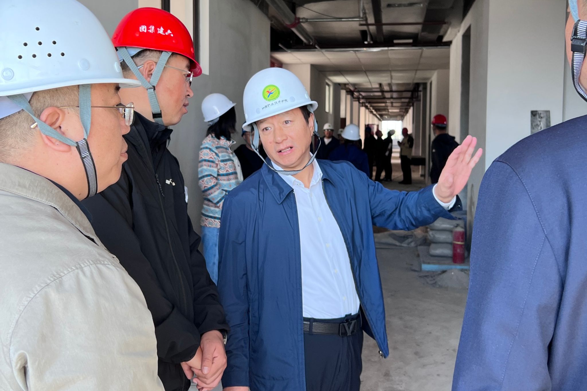 雷承锋此行不仅对所有建设者表达了诚挚的慰问,还深入到施工一线的工作面,全面细致地检查了工程项目的最新进展情况。他逐一走访了第一、二标段,不仅考察了产教融合实训楼、学生宿舍内部装修工程的每一个环节,而且对各建筑物外立面施工环节提出了建设性的建议。雷承锋明确指出:一是务必强化安全设施建设。他强调施工过程必须严格遵循安全第一的原则,尤其要严格把控楼梯扶手、门窗等关键部位的产品质量,确保每一处设计都要在实际使用中为学生的安全提供坚实保障;二是要加速推进外立面施工进程。鉴于当前各单体建筑外立面施工已取得初步成果,他要求两家施工单位务必抢抓时间,力争在冬季来临之前完成所有外立面的施工,以保障整个项目的顺利推进;三是注重施工细节与质量监管。他要求所有建设者在追求进度的同时,更要注重施工细节的处理,加大质量监管力度,高标准、严要求地推进新校区建设。他表示学院新校区建设是加快推进“三个一工程”的关键一招,是实现“特色鲜明、全国一流”的高水平高职院校的重要支撑,是早日实现本科层次职业大学目标的坚实基石。