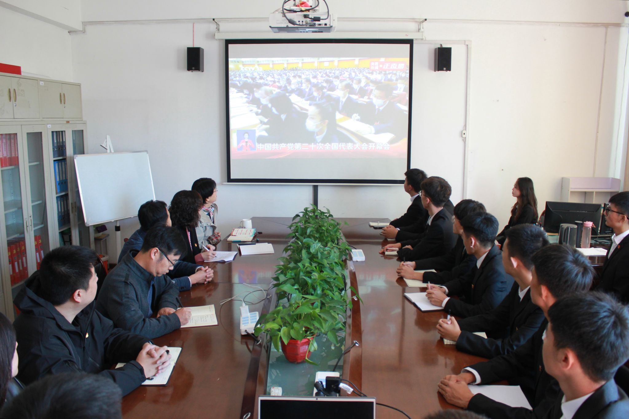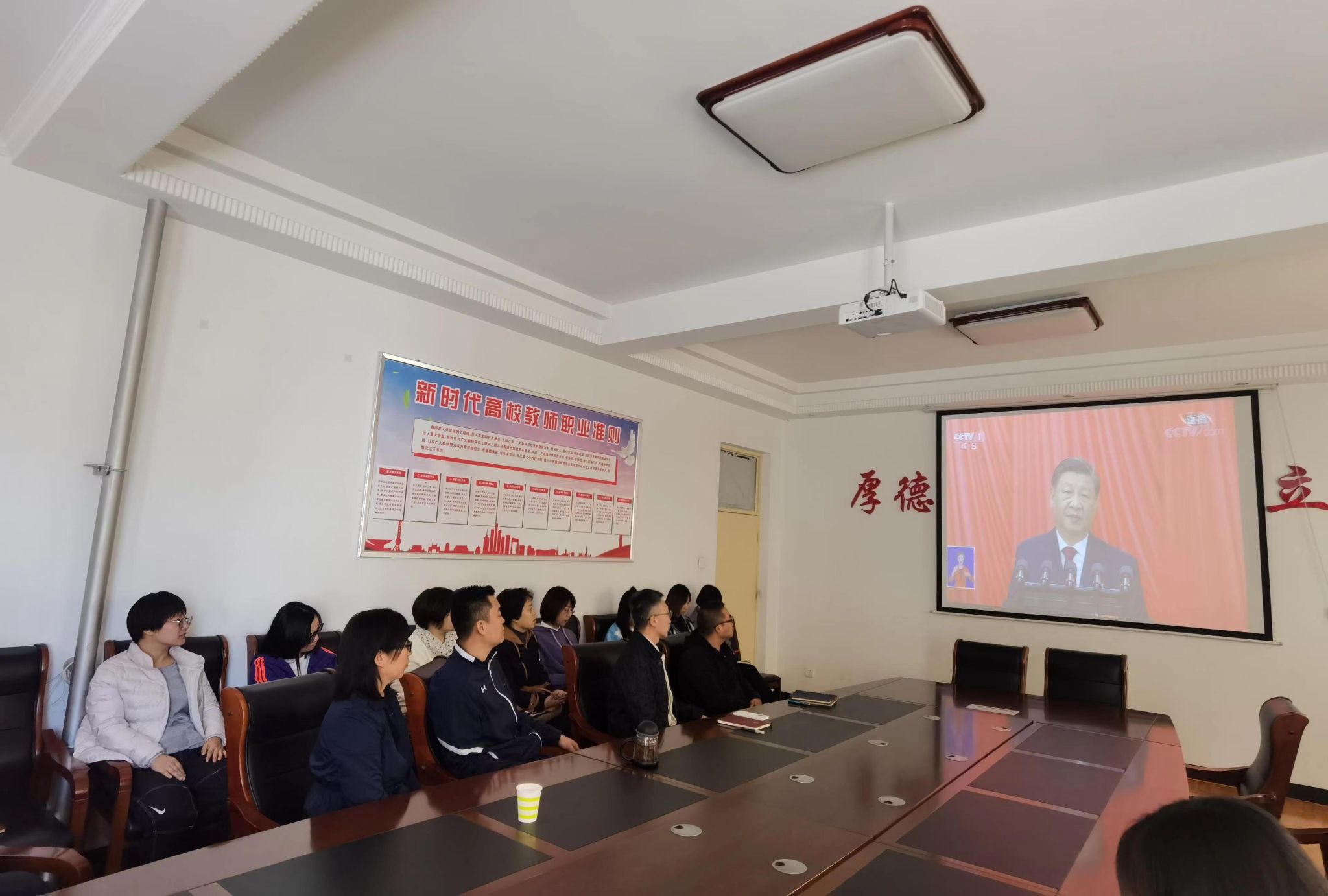 学院党委理论学习中心组全体成员以集体学习的形式集中收看开幕会直播;各基层党组织统一以理论学习中心组的形式组织各中心组成员集体收了看党的二十大盛况;各部门采取线上线下相结合的方式,在本部门会议室等场所设立直播点,广泛组织党员干部师生通过电视、网络、手机客户端等多渠道收听收看开幕会直播。