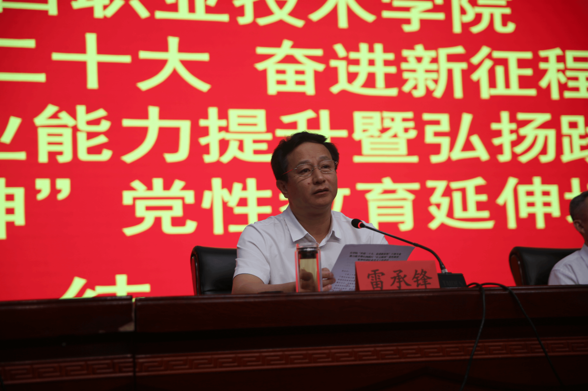 他要求,全院党员干部要不忘初心担使命,全心全意践行党的宗旨。要在坚守初心中始终站稳师生立场,自觉站在师生立场上对师生负责、为师生服务,厚植党的群众根基、巩固党的执政地位;要在工作中做到心中有师生,把师生的每件事都当作大事来办,切实解决师生“急难愁盼”的问题。他强调,学院各级干部要坚持精神的追求,始终保持阳光健康的心态,执着探索职业教育前进方向;要在守本分、尽责任、敢担当中,不断提升自己的人生境界和工作格局,不断推动学院工作迈上新台阶;要把实现好、维护好、发展好师生根本利益作为文明一切工作的出发点和落脚点,坚持深入教育教学一线、深入师生、深入实际,到热点难点集中的地方去了解诉求,到困难矛盾多的地方去排忧解难,到工作艰巨繁重的地方去打开局面,真正让师生能够在最需要的时候感受到党的温暖、看得见干部的作为。