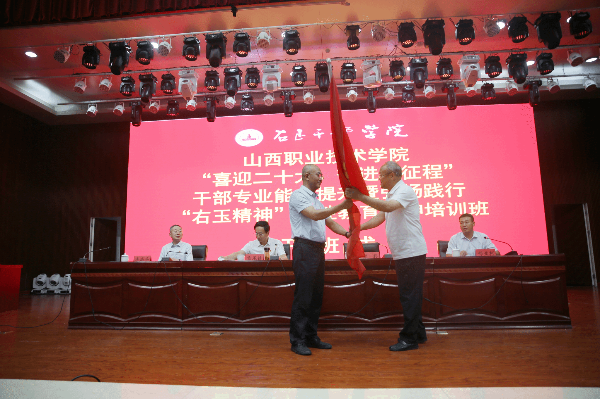 25日下午,延伸培训开班仪式在右玉干部学院报告厅举行。学院领导班子成员出席开班仪式,学院党委书记雷承锋作动员讲话,右玉干部学院特聘专家郭彩教授致欢迎词并为本期培训班授旗。会议由班主任邢老师主持。
