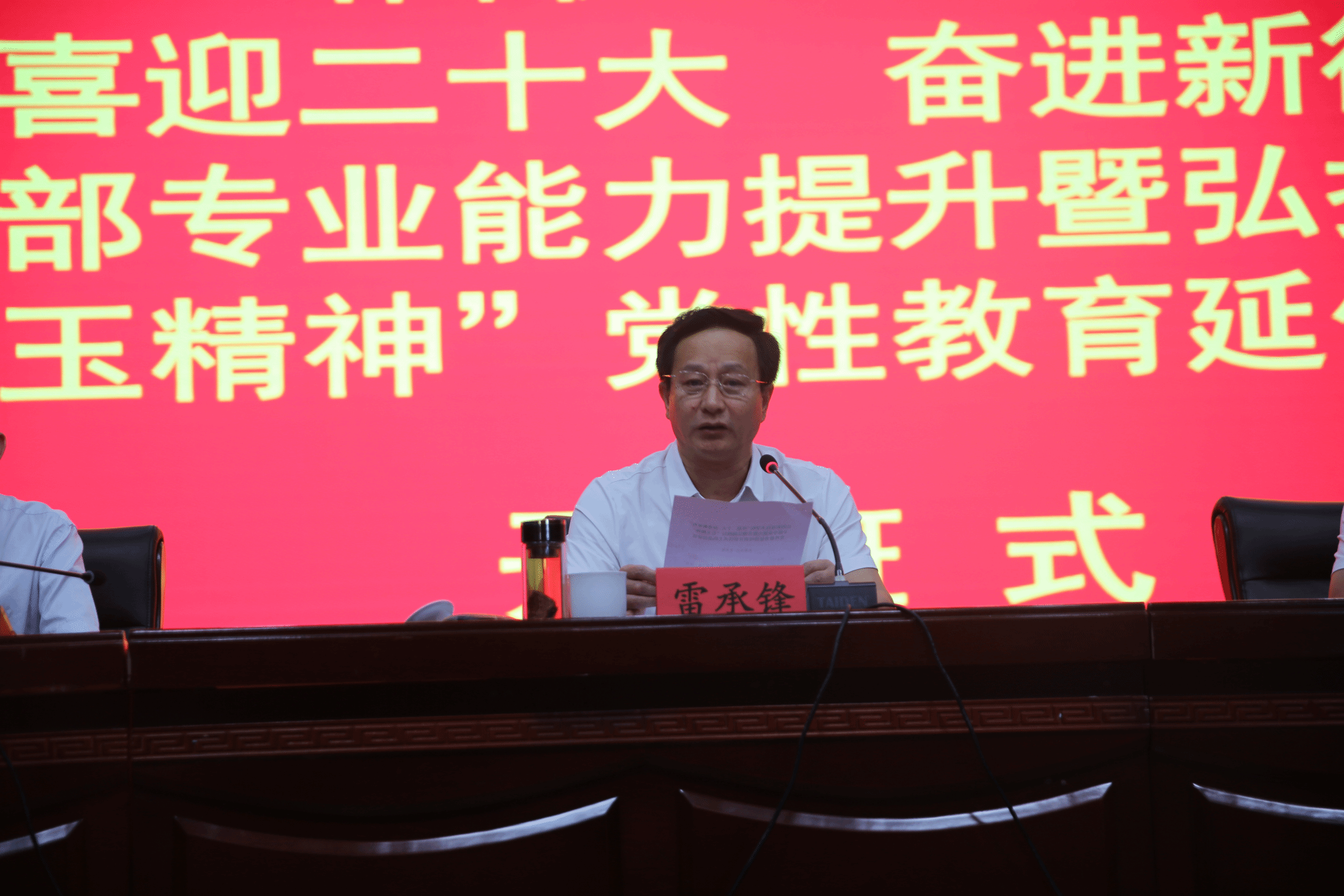 学院党委书记雷承锋在动员讲话中深刻阐释了“右玉精神”的丰富内涵和时代价值,强调了弘扬践行“右玉精神”对于立足学院新征程落实党委“一个目标、两手硬”的总体建设发展思路,推进学院全方位高质量发展的重大意义,对全体干部从充分认识开展“右玉精神”延伸培训的重要意义,牢牢把握“右玉精神”的真正内涵,珍惜学习机会、严格遵守培训纪律等三个方面提出了具体的要求。他强调,全体学员一定要静下心来认真学习、深入思考,立足本职对照感悟精神伟力,把这次学习教育作为锤炼坚强党性的“大熔炉”,提高专业能力的“加油站”,力争取得实实在在的学习效果。