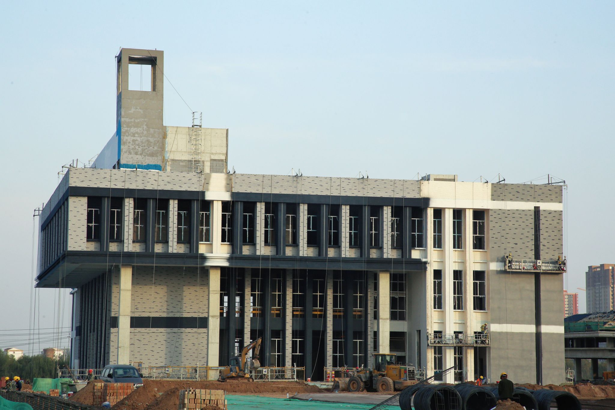 9月11日至12日,学院党委书记雷承锋率队考察新校区一期工程外立面装饰施工工作,党委委员、副院长赤新生,党委委员、宣传统战部部长兼党政办公室主任宋海宏,新校区总设计师冒亚龙及各参建单位代表陪同考察。雷承锋一行检查了食堂、学生公寓及产教楼的外立面装饰样板工程,听取了施工及设计单位的汇报。雷承锋强调,新校区建设对于推进开云官网高质量发展意义十分重大,他要求各参建单位要进一步提高思想认识、强化质量管控、加强组织保障确保施工安全,并对外立面设计、选材及施工工作提出具体要求。