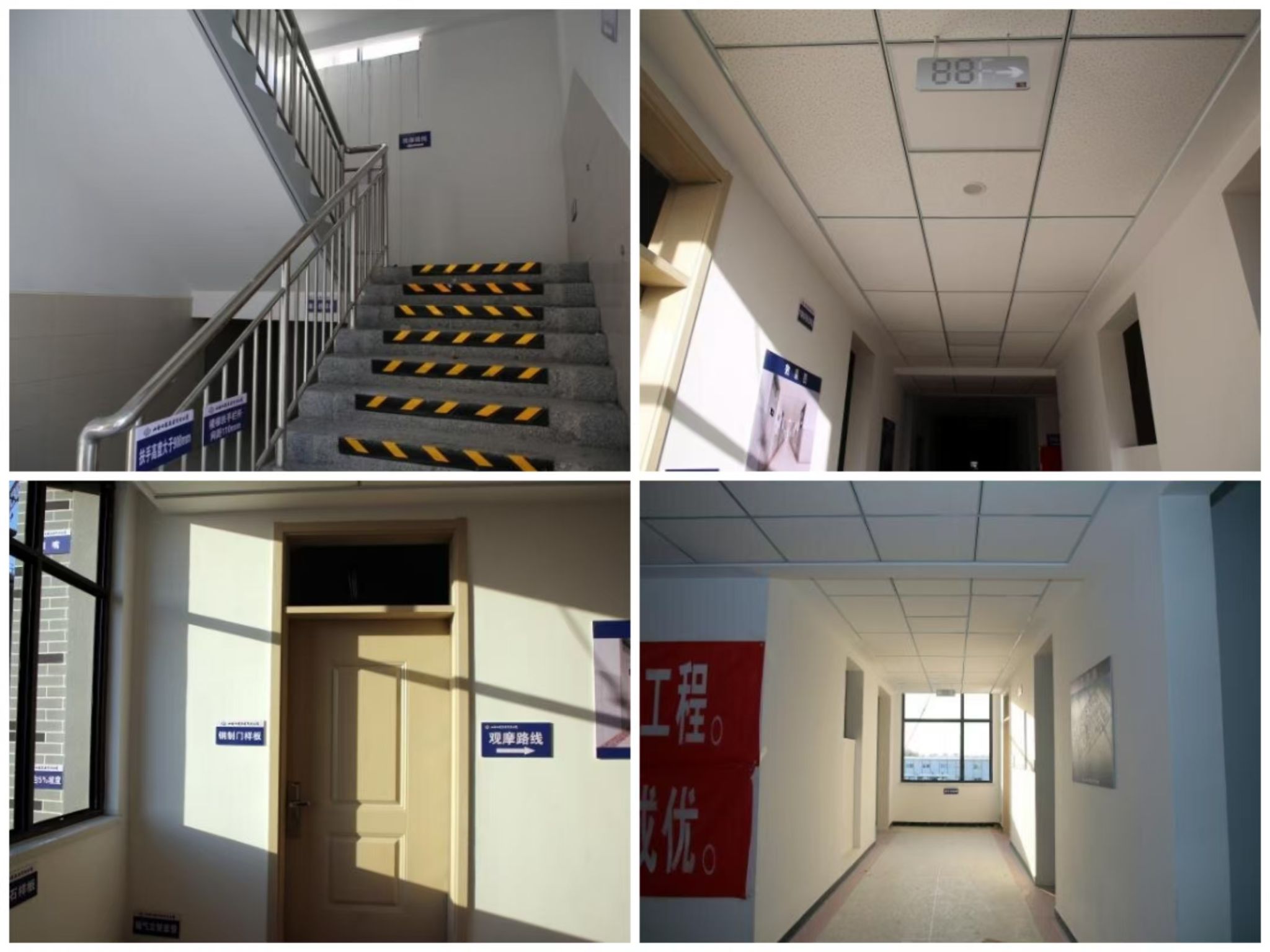 A4-2#楼外墙真石漆打底、贴分隔条,一层水磨石地面打磨,三、四、五、六层卫生间贴砖,五、六层内墙刮白,连廊隔震缝角钢安装(已完)。