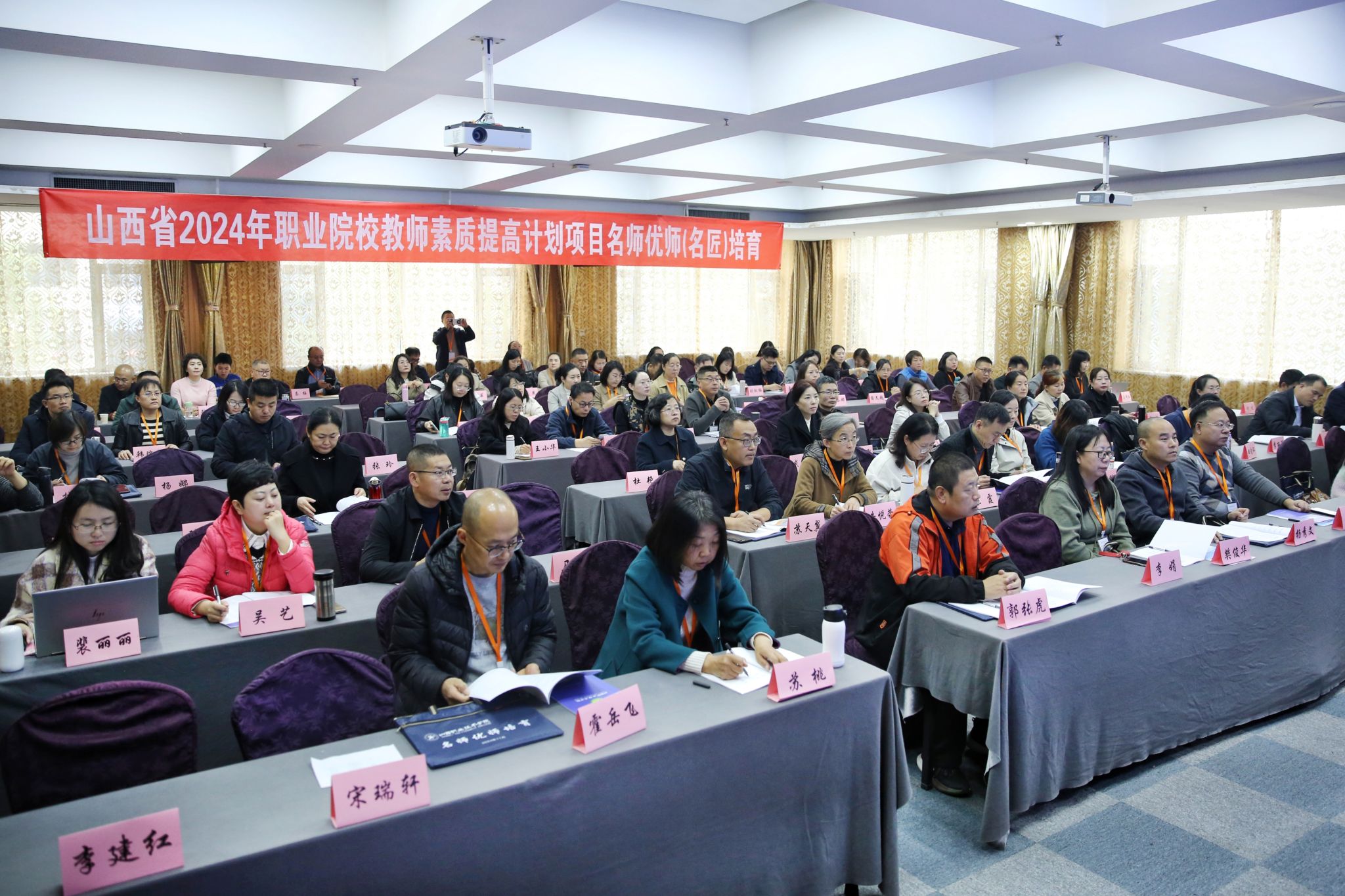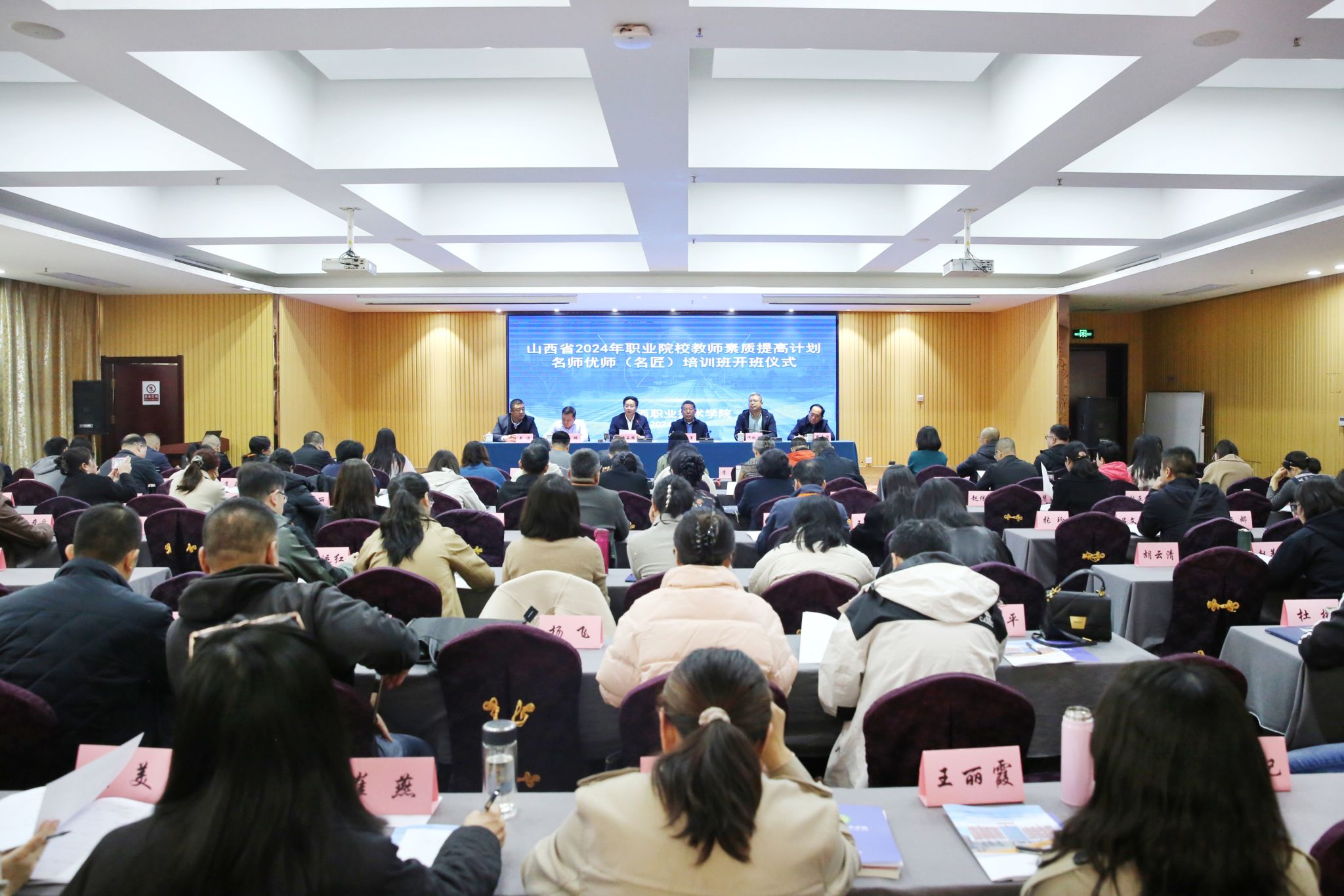 11月9日,由开云官网承办的山西省2024年职业院校教师素质提高计划名师优师(名匠)培育研修班在叙庭酒店(原山西省教育宾馆)举行开班仪式,来自山西省的128位中高职院校名师优师(名匠)汇聚在龙城太原。山西省委教育工作委员会主持日常工作的副书记杨军,省教育厅教师工作处四级调研员李鹏出席会议。学院党委书记雷承锋,党委副书记、院长何秋生,党委委员、副院长蔚志坚,继续教育与培训部主任关浩,项目负责人、培育研修班班主任及参训学员参加会议。会议由何秋生主持。