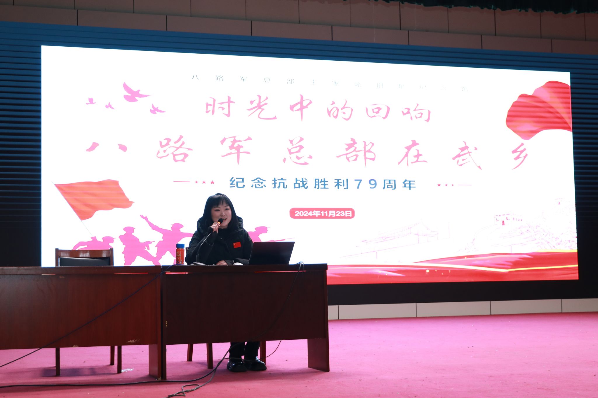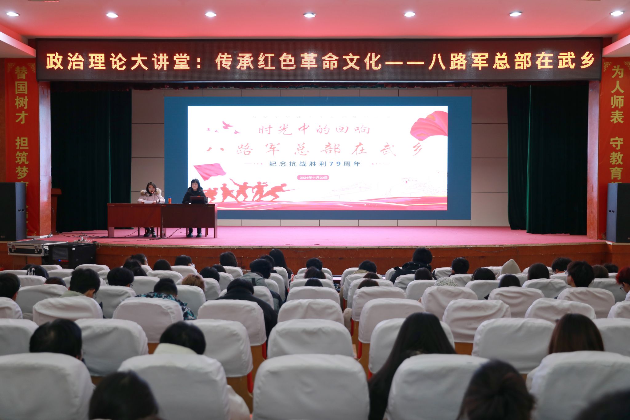12月10日下午,开云官网思想政治理论教学研究部在长风校区大礼堂举办了本学期第四期政治理论大讲堂,邀请到武乡县八路军总部王家峪旧址纪念馆讲解员闫梦源,以“八路军总部在武乡”为主题,讲授革命故事,传承红色文化。